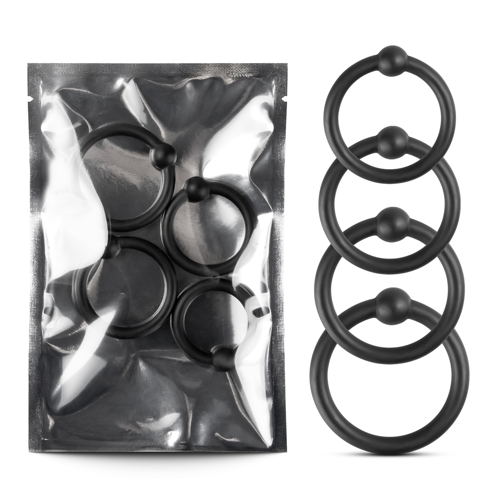 Perform like a stud with this 4 pcs cock rings kit.Soft, flexible and stretchy that can keep your stiffy hard and going like never before!!! Stretchy cock rings. These cock rings will give you the support you need to have a bigger, stronger erection. Yes, cock rings can hold your cock up and running for hours. Give yourself a bigger more powerful erection. Cock rings can seriously prolong ejaculation too.