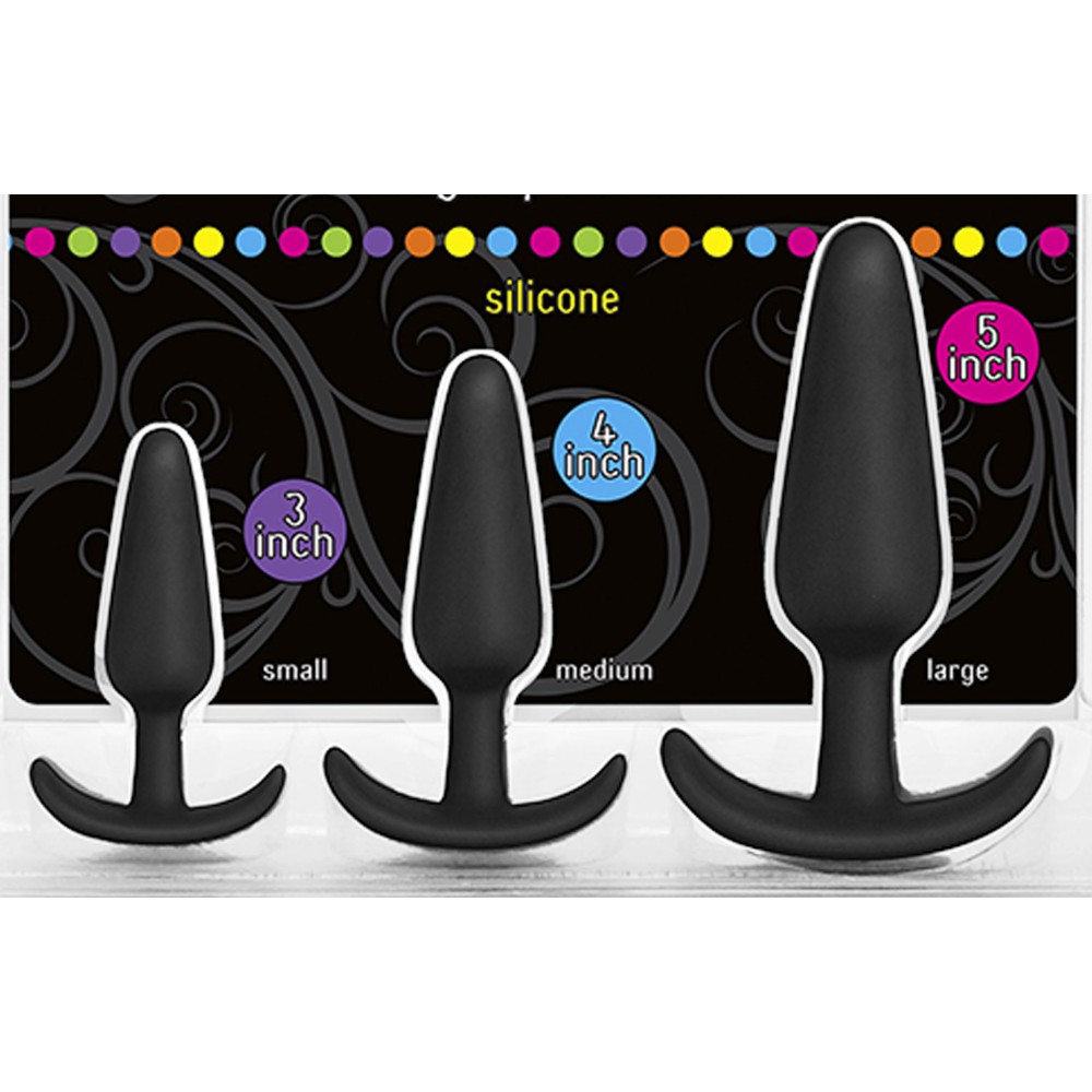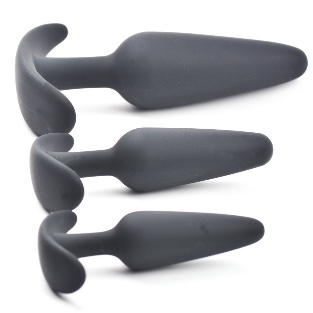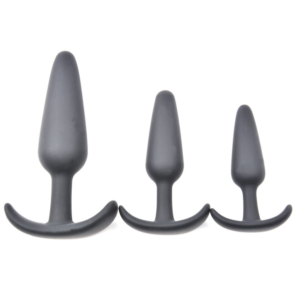 This AnalXstasy anal butt plug set of three is made of smooth black silicone that is soft to the touch. It is a series of 3 sizes, suitable for training and preparation of the anus before the real thing. Make sure you combine it with water-based lubricants only.