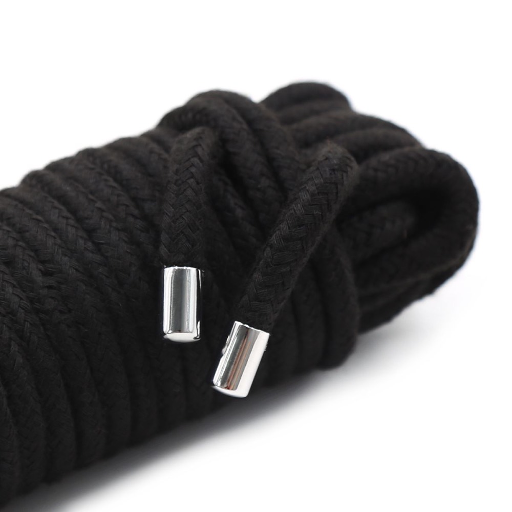 Naughty Toys Braided Cotton bondage fetish restraints Rope 20 Meters BLACK. High-quality BDSM Bondage Rope for exciting bondage games. Made out of 100% braided Cotton which quarranties no skin irritation and scratches. Prodective metal ends which they will ensure long lasting use.