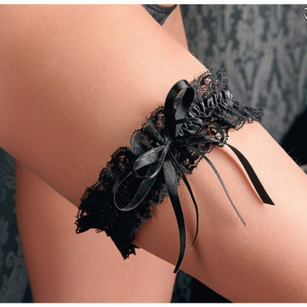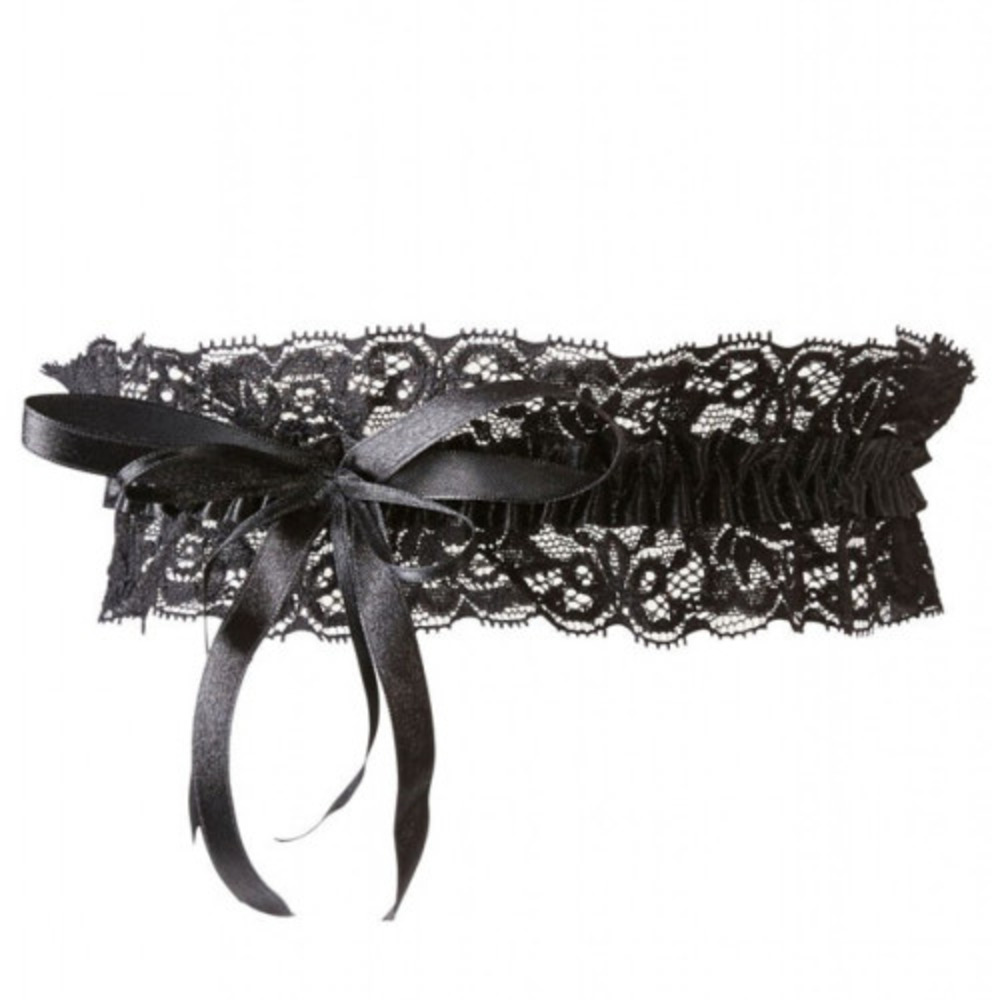 Black lace garter with a small decorative satin bow.