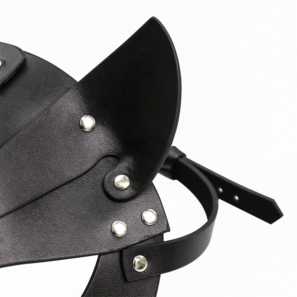 The Black Leather Cat Mask O/S has amazing quality, it's fully adjustable and perfect role playing. Ideal for sex role playing parties and as carnaval outfit wear accessory. Wild woman sends her greetings! Sturdy mask made out of imitation leather with sensual cat ears and little rhinestone rivets. With press studs and buckle fastener at the back for an ideal fit. Perfect for exciting role plays.