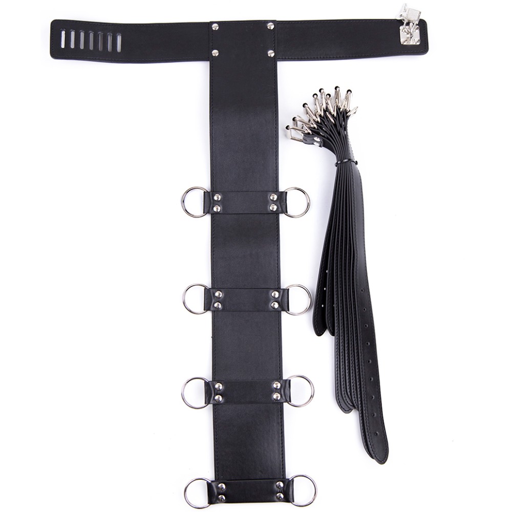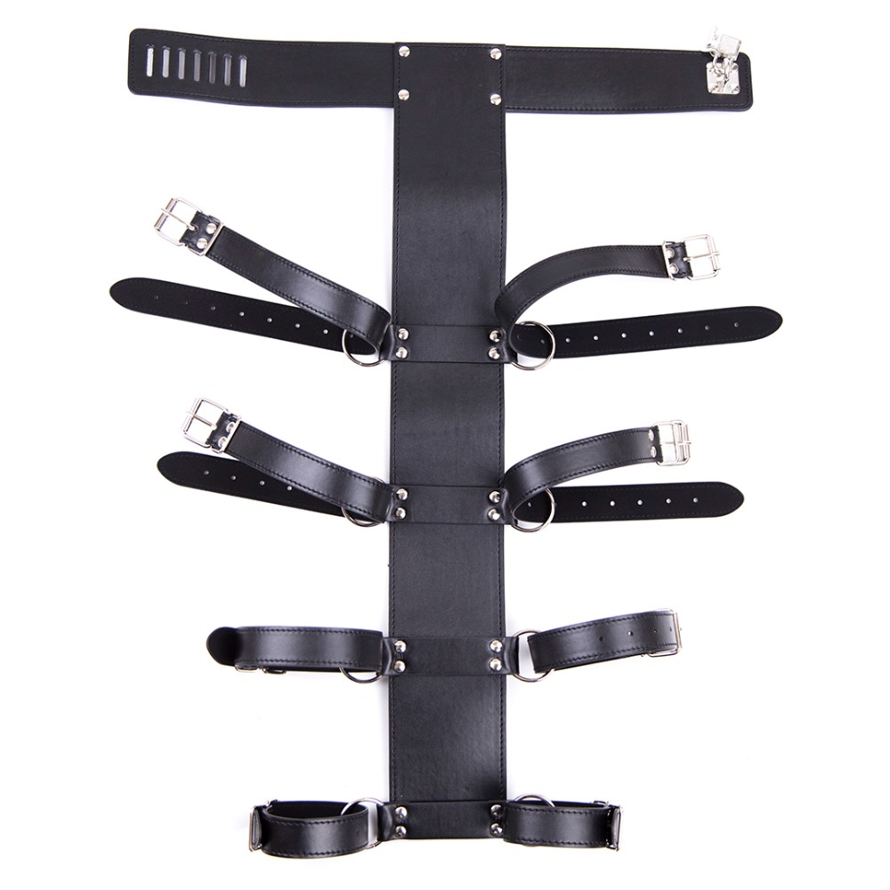 The Body leather restraints collar with locking arm splints is an almost full body restraints complete submission to the master! Immobilise completely the slave. Be in full control and rule your fetish game with this pu leather, adjustable, backle up, body restraints with locking arm splints.