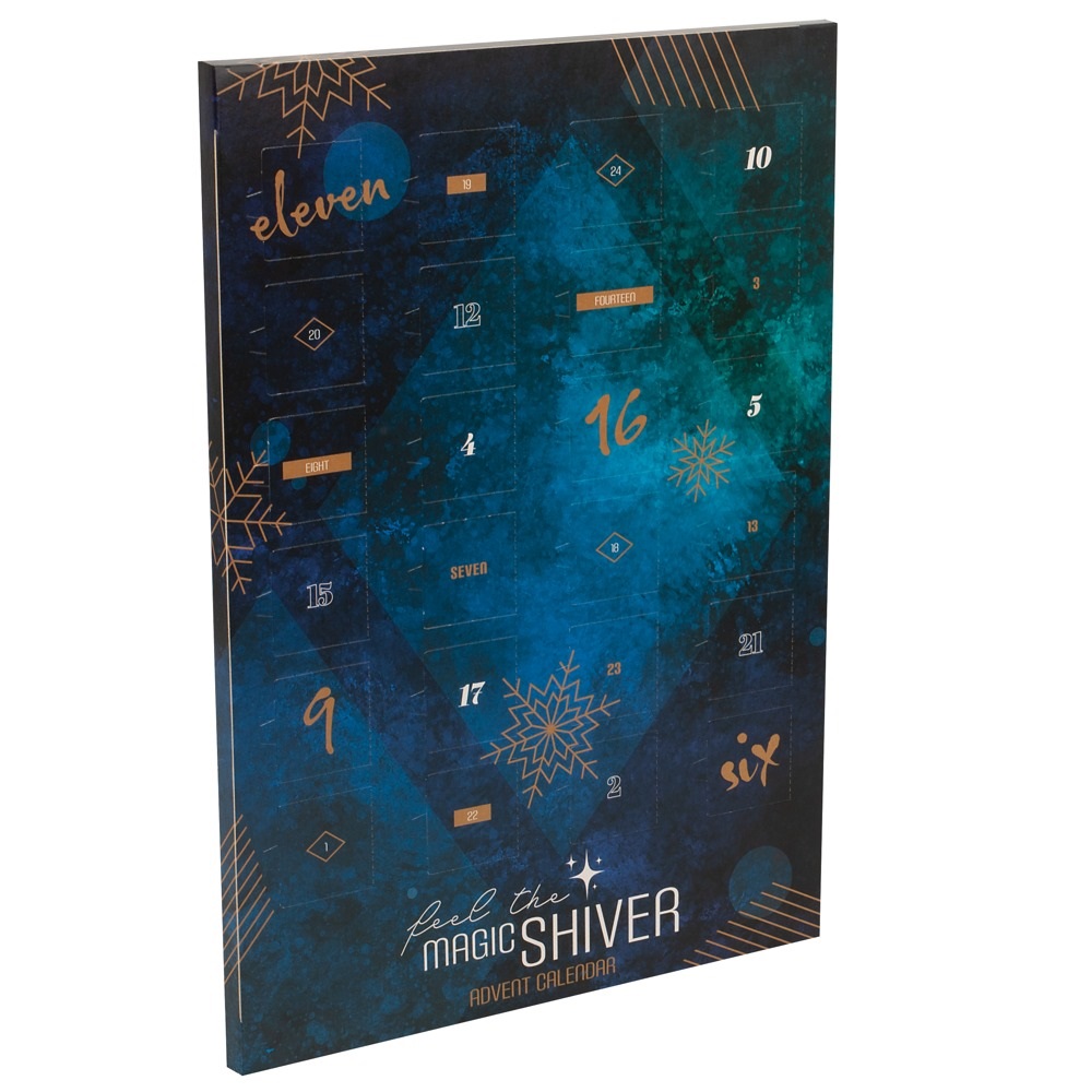 Sweeten the Advent period! The premium Advent calendar, Feel the Magic Shiver, is in a (discreet) sensual Christmas design. It contains 24 pieces of chocolate that are in Christmassy designs. The finest milk chocolate with 35% cocoa – produced with high-quality Fairtrade cocoa.