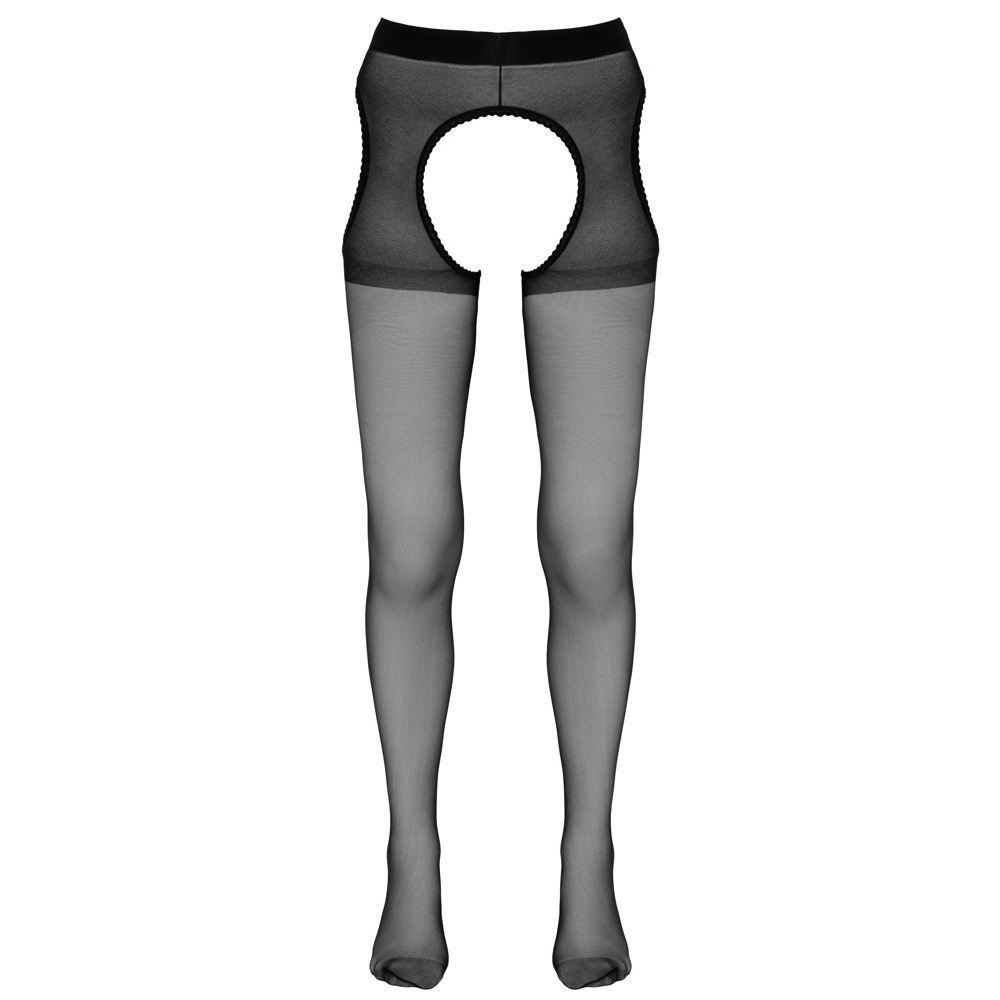 Black sexy classic stockings and suspenders in one! Crotchless for easy and quick sex, with exciting openings at sides. Lift up your skirt and have sex anytime, anywhere.