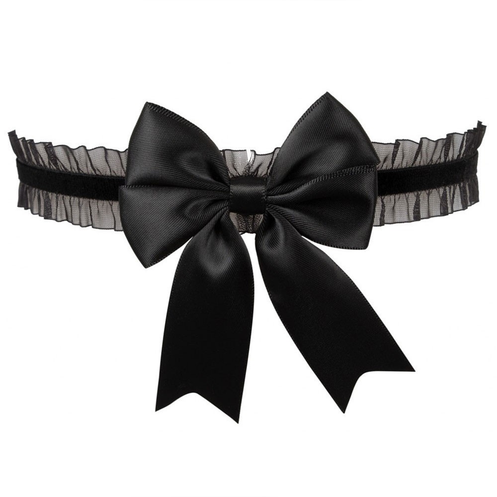 Decorate your leg with the beautiful Cottelli Tulle Garter Black. Ruffled tulle black garter with stretchy velvet strap and a big satin bow at the front.