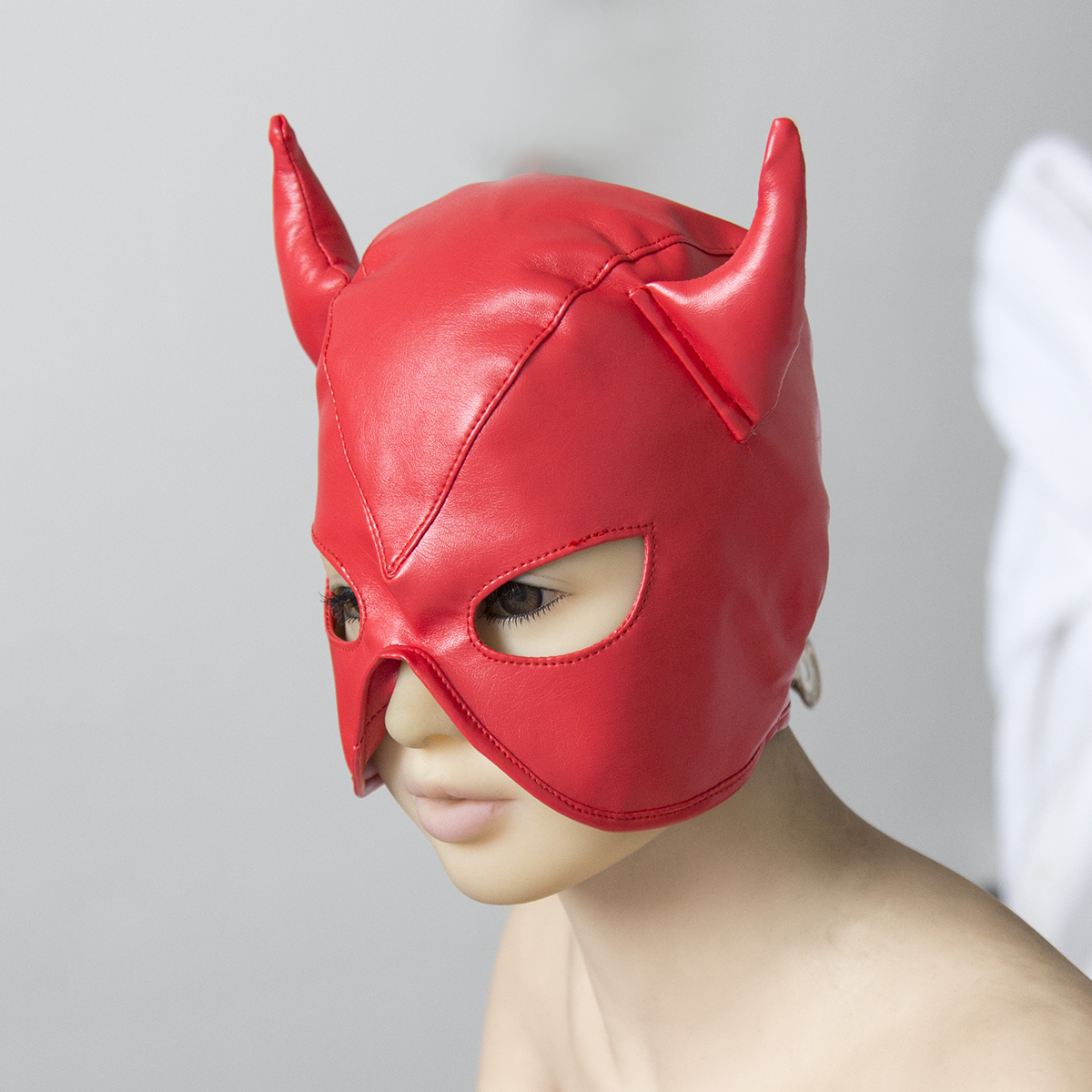 Unisex, Faux soft RED Leather Devil Role Play Half Face Mask with Horns. One size fits all. Colour- Red