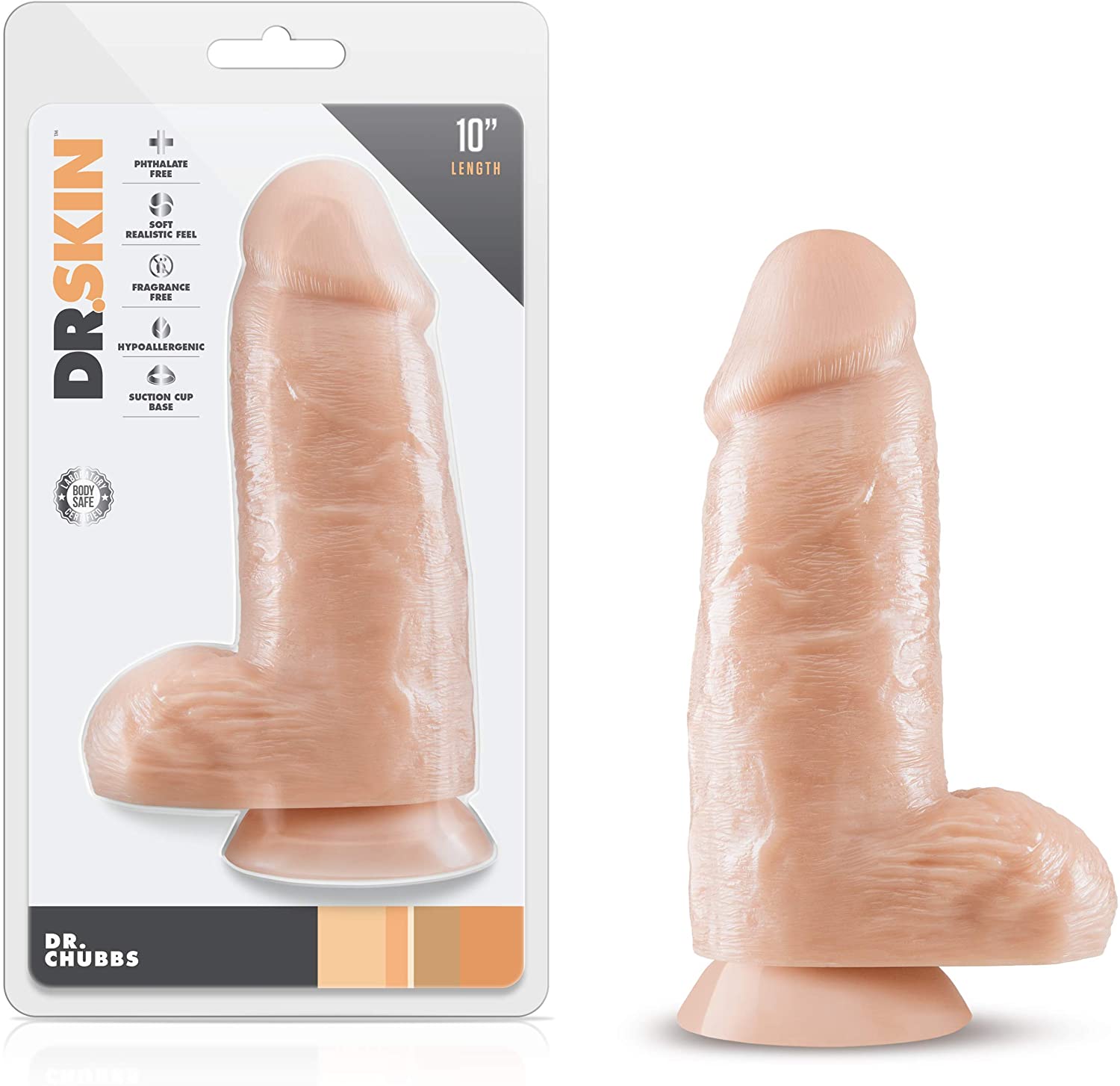 Stretch your sexual limits with this Large in diameter for advanced play, DR. SKIN DR. CHUBBS BL-15483 VANILLA. This realistic fleshwhite dildo with balls and suction cup base is here to exband your intimate moments! The Dr. Skin Dr. Chubbs offers you new levels of girth. With 8,2 cm (3.25 inches) of width and 17 cm (6.75 inches) of insertable length, Dr. Chubbs is ideal for anyone who wants to feel stretched to their limits. It delivers a soft, realistic feel and likelife texture for a better-than-real experience. Stick this toy on any smooth, flat surface to take advantage of its strong suction cup. Dr. Chubbs lab-tested non-porous PVC is body safe and easy to clean: just wash with gentle soap and water, then let air-dry.