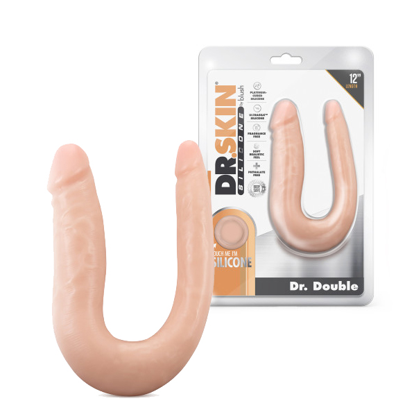 The doctor will see you now! The Dr. Skin Silicone Mini Double Dong is open for practice, ready to aid you in exploring creative possibilities. This soft, U-shaped toy flexes and curves, making it ideal for double penetration or for comfortable use between partners. Grip its U-shape curve and move both heads for blended pleasure! Featuring 2 different-sized ends for comfort: slim on one side, and average girth on the other. Made of body-safe Puria™ platinum-cured silicone and enveloped in satin smooth Ultrasilk®. Contains No Fragrances, Phthalates, Paraffins, or Latex and is easy to clean!