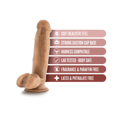 DR SKIN Dr Mark dildo with balls Tan 17.7 x 3.8 cm !! The doctor will see you now! Look out for Dr. Mark! Stick him to any smooth surface with his sturdy suction cup base for a hands-free adventure. Dr. Skin are harness compatible, so strap him into your favorite dildo harness for intense strap-on partner play. This dildo has all the sculpted veins, balls, and texture of a real cock and plans to give you that realistic experience you’ve been looking for. Dr. Mark is formed from soft, Body Safe, Non-Porous PVC. Contains no Fragrance, Phthalate, Paraffins or Latex. Blush excels at creating incredible, realistic dildos that will compliment your fantasies and leave you feeling satisfied! This toy can be easily cleaned with warm water and a fragrance-free soap or your favorite toy cleaner.