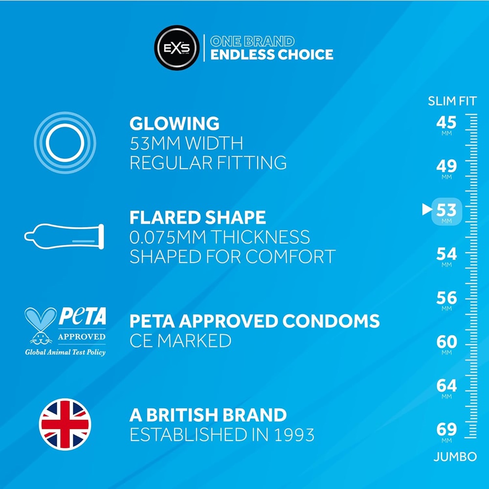 Illuminate your intimate encounters with EXS Glow-in-the-Dark Condoms, where protection meets excitement for an unforgettable experience