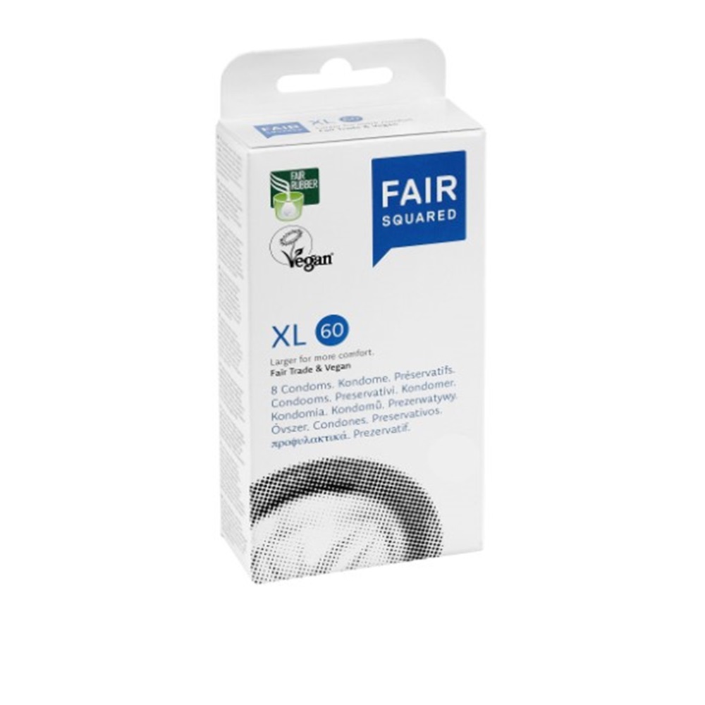 Fair Squared XL Condoms 8 Pack: Designed for comfort, these extra-large, transparent condoms feature a cylindrical shape and a built-in reservoir for added safety and reliability. Perfect for those seeking high-quality protection with a superior fit.