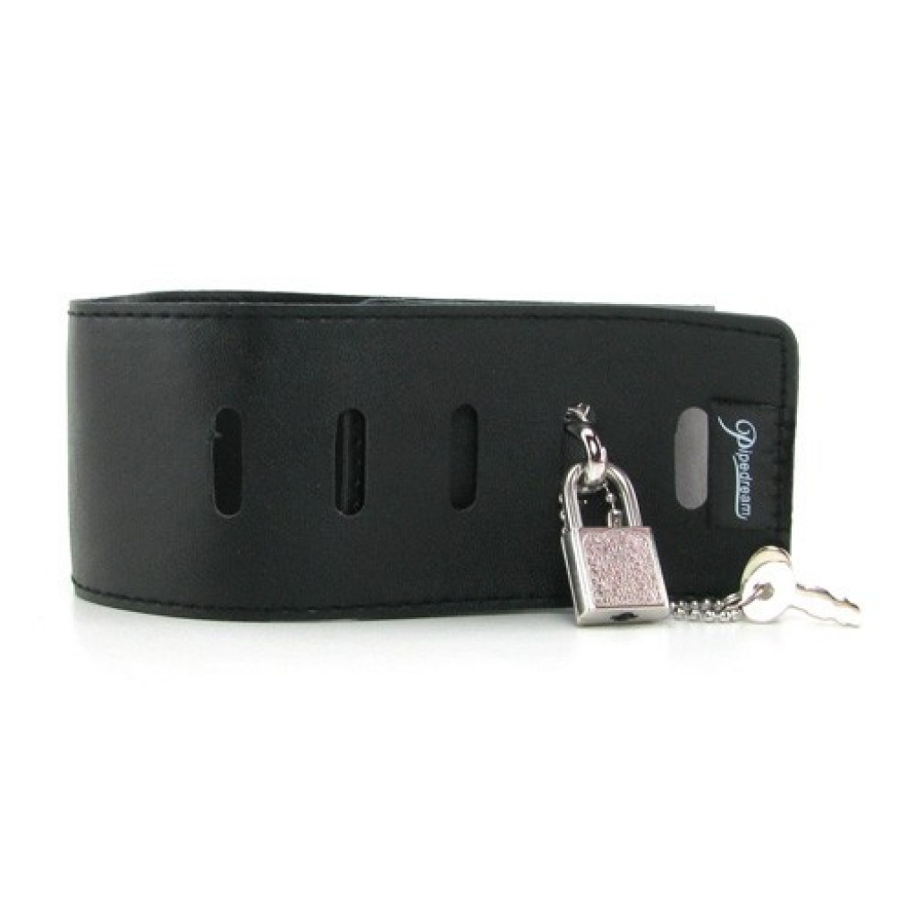 Fetish Set for Masters and slaves by Fetish Fantasy Pipedream. Offering an array of bondage-centered scenarios with its sturdy, high end leather styling, the Collar and Clamp set combines a traditional pair of no-nonsense, rubber tipped alligator nipple clamps with a weighty chain and supple leather choker. Attaching firmly to the nipples for that incomparable pinch, the clamps are adjustable in terms of tension, letting you and your playmate find just the right amount of squeeze- the dominant will be able to tug and twist the attached chain with ease. The fully adjustable leather collar closes with a lock and key, ensuring security and complete compliance, it features a sturdy ring at the front, suitable for a leash, if desired.