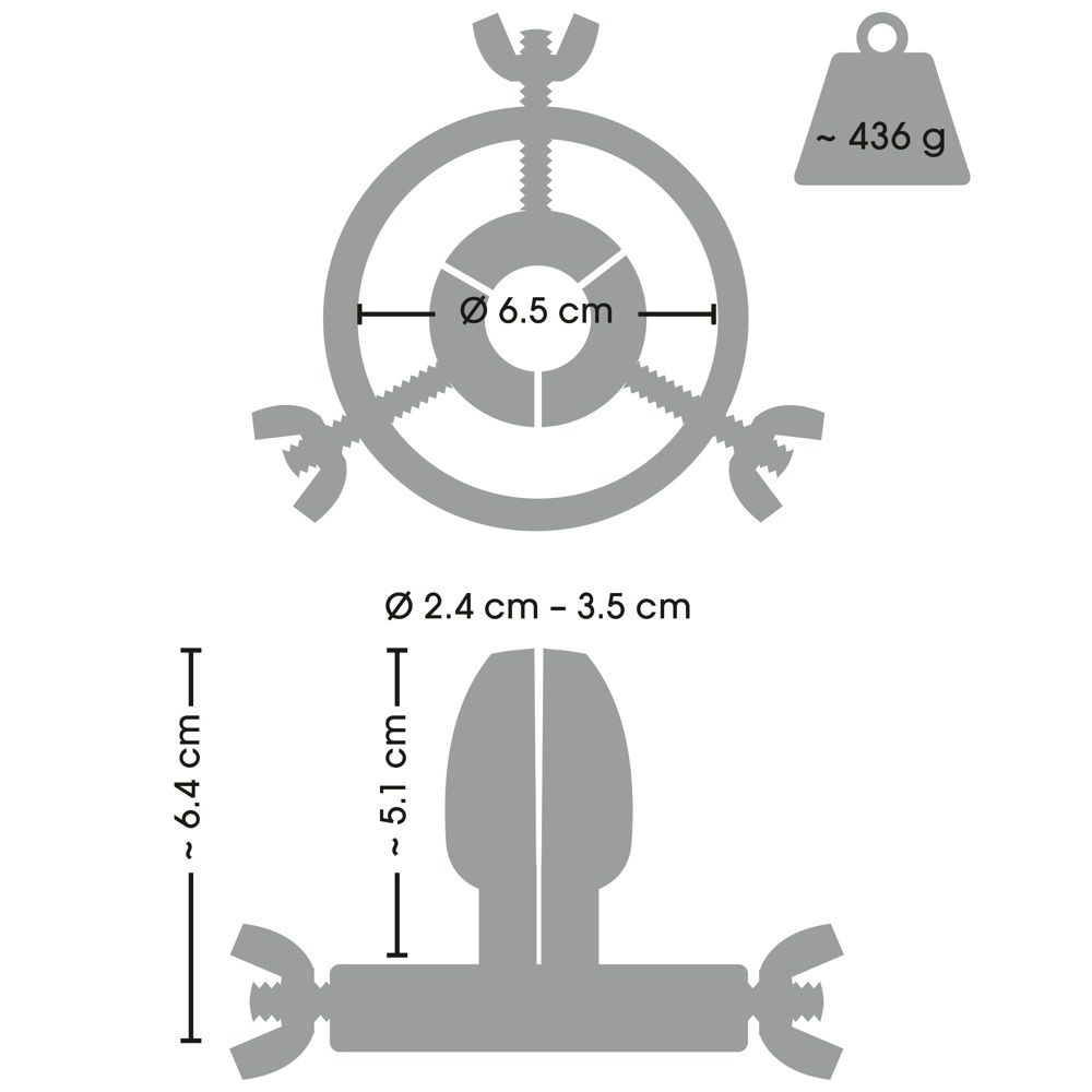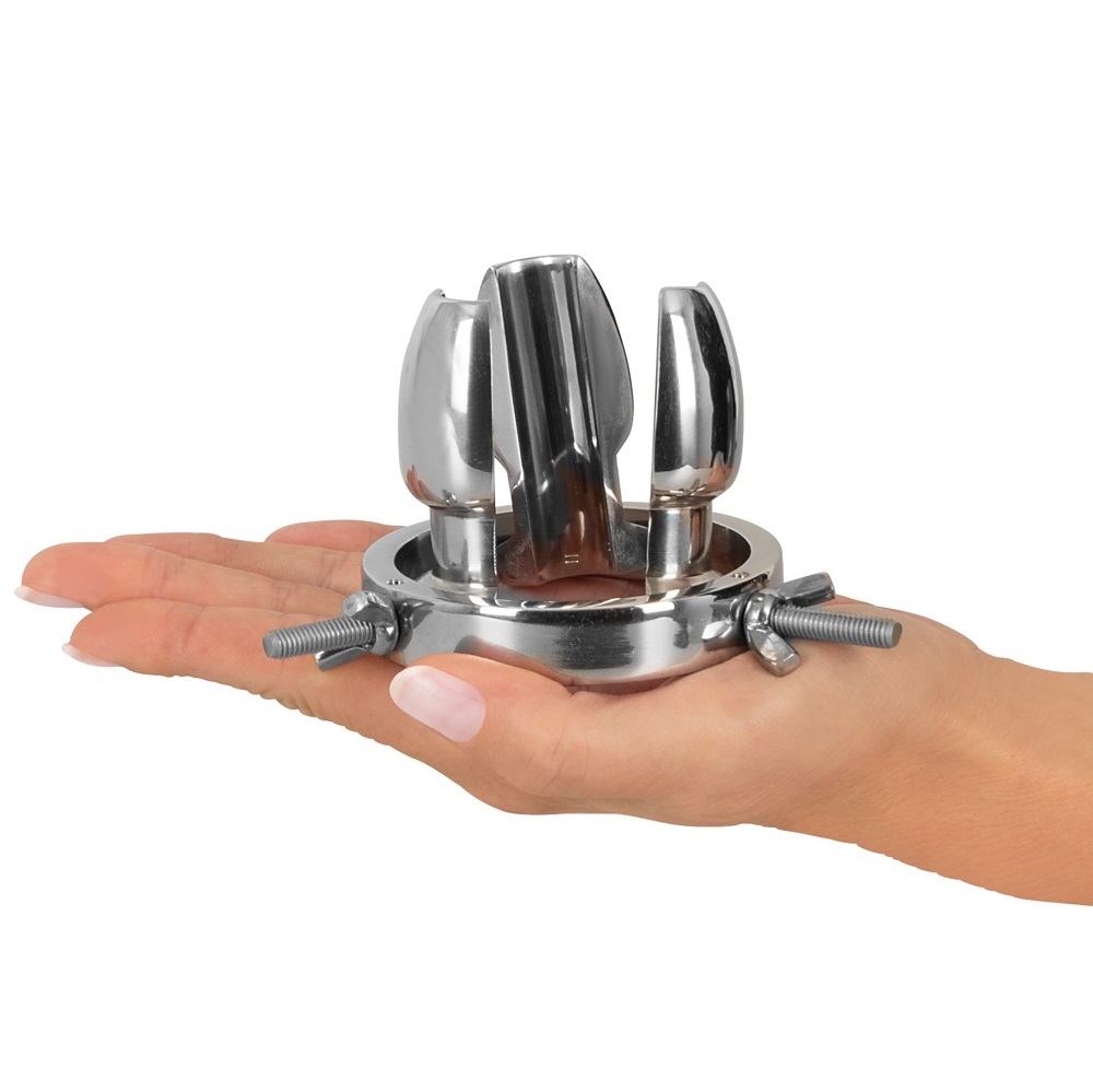 Fetish Collection stimulation and stretching Anal Spreader. This amazing Anal steel Spreader from fetish collection not only offers great anal stimulation and stretching, but also exciting views and insights into the backside. With its 3 adjusting screws, the plug acts as an anal speculum and stretcher and can be adjusted in diameter. Its large ring at the base ensures the perfect view and safe handling without slipping in. The round opening also offers numerous possibilities for anal play with toys and enemas.