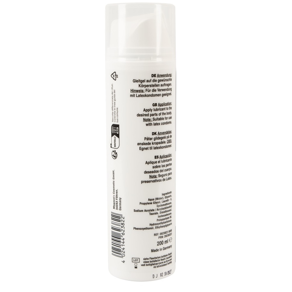 Fisting gel for optimal stretching of the anus and vagina. The gel has a slight numbing effect with long-lasting lubricating properties. Water-based. Contains some silicone. Free from grease and perfume. Odouress, isn´t sticky and doesn´t drip. Suitable for use with latex condoms. 200 ml bottle with a pump dispenser.