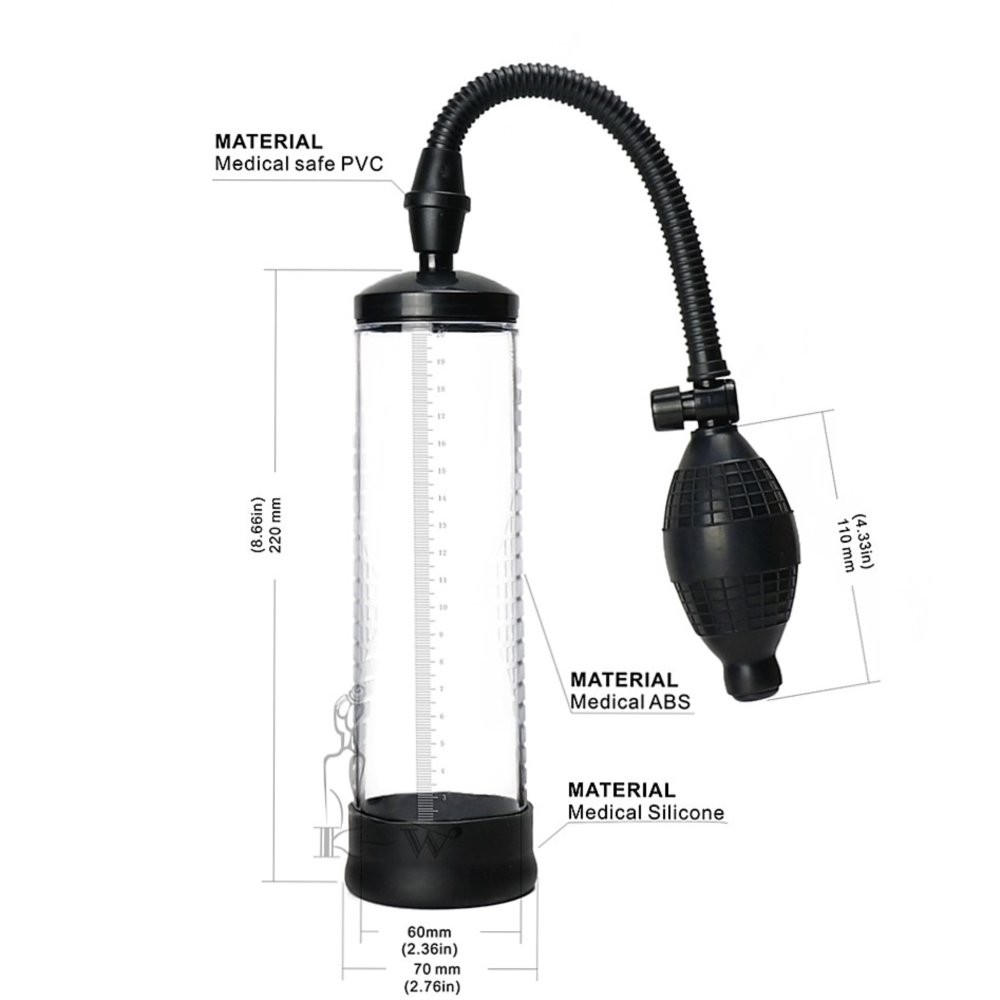 High quality 25 cm clear plastic tube with a quick air pressure release valve. Removable air tube for easy cleaning. Sure grip bulb with metal air valve for faster penis growth and long fabulous erections that last. Removable soft cock ring base can be trimmed to fit your penis as it grows in width and length.