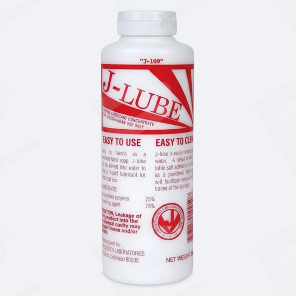 J-lube is a concentrated powder-lubricant sold in powder form and used by veterinarians. J-LUBE Powder Lubricant is a product that turns a dry powder into a smooth liquid lubricant when mixed with water. This formulation makes it good for those who want a large amount of lubricant, as just a small amount of the powder can create a substantial volume of lube. The liquid product is packaged in a large bottle, allowing users to measure out exactly what they want, reducing waste and ensuring long-lasting use.