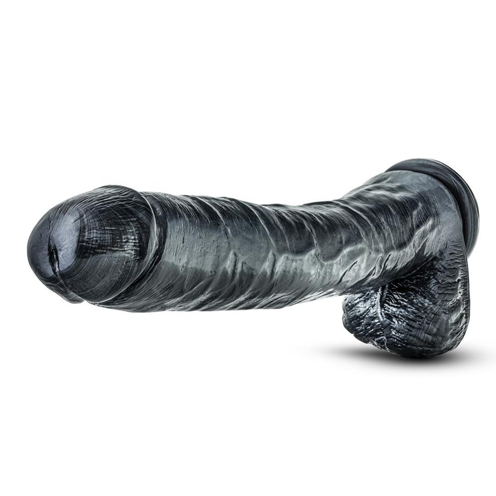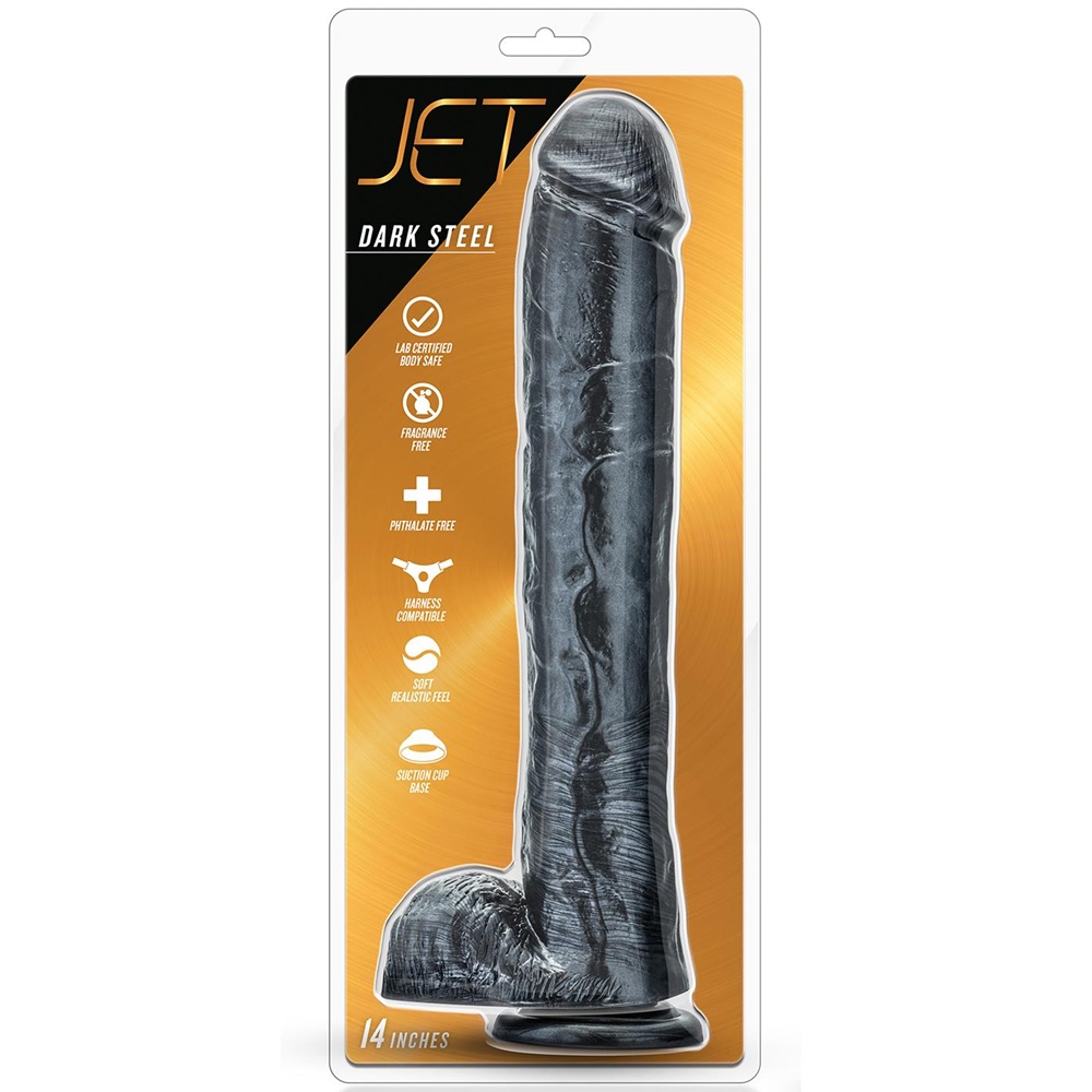Blush Jet Dark Steel Carbon Metallic BLACK Cock Balls with suction base cup Dildo 35 X Ø 6 cm is not a regular cock unless you can handle this large ass and pussy exbander. If you are looking for a tool that can take anything, try The Jet Dark Steel 14 Inch (35.5 cm) Realistic Giant Dildo with suction cup. This massive member is longer and thicker than anything you’ve seen before. The unique Carbon Metallic Black finish is sleek and menacing. He is realistically sculpted with a super long and thick shaft for the most intense time of your life. Experience 12 insertable inches. His girth is a challenging 2.4 inches. Wield him by yourself or with a partner, because this tool is equipped with a strong suction cup and he’s harness-compatible for extreme play. Realistically formed from soft, body safe, non-porous PVC. Contains no fragrance, Phthalate, paraffins or latex. That means its body safe. To clean, wash with soap and water or a toy cleaner then let air dry. For the experienced user only!