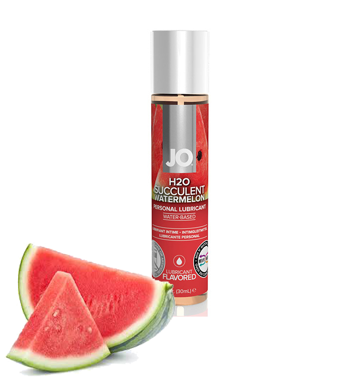 Jo Watermelon Flavored Water Based Lube 30 ml.Turn your partner into a sweet, ultra juicy treat with Jo Watermelon Lubricant. Playful way to tease your appetite for each other. This water based flavored lube is condom safe, toy friendly, and can be used by women or men to add extra enjoyment to oral play. Jo uses natural flavors for their lubricant to give them a superior mouthwatering taste that ll have you coming back for more!