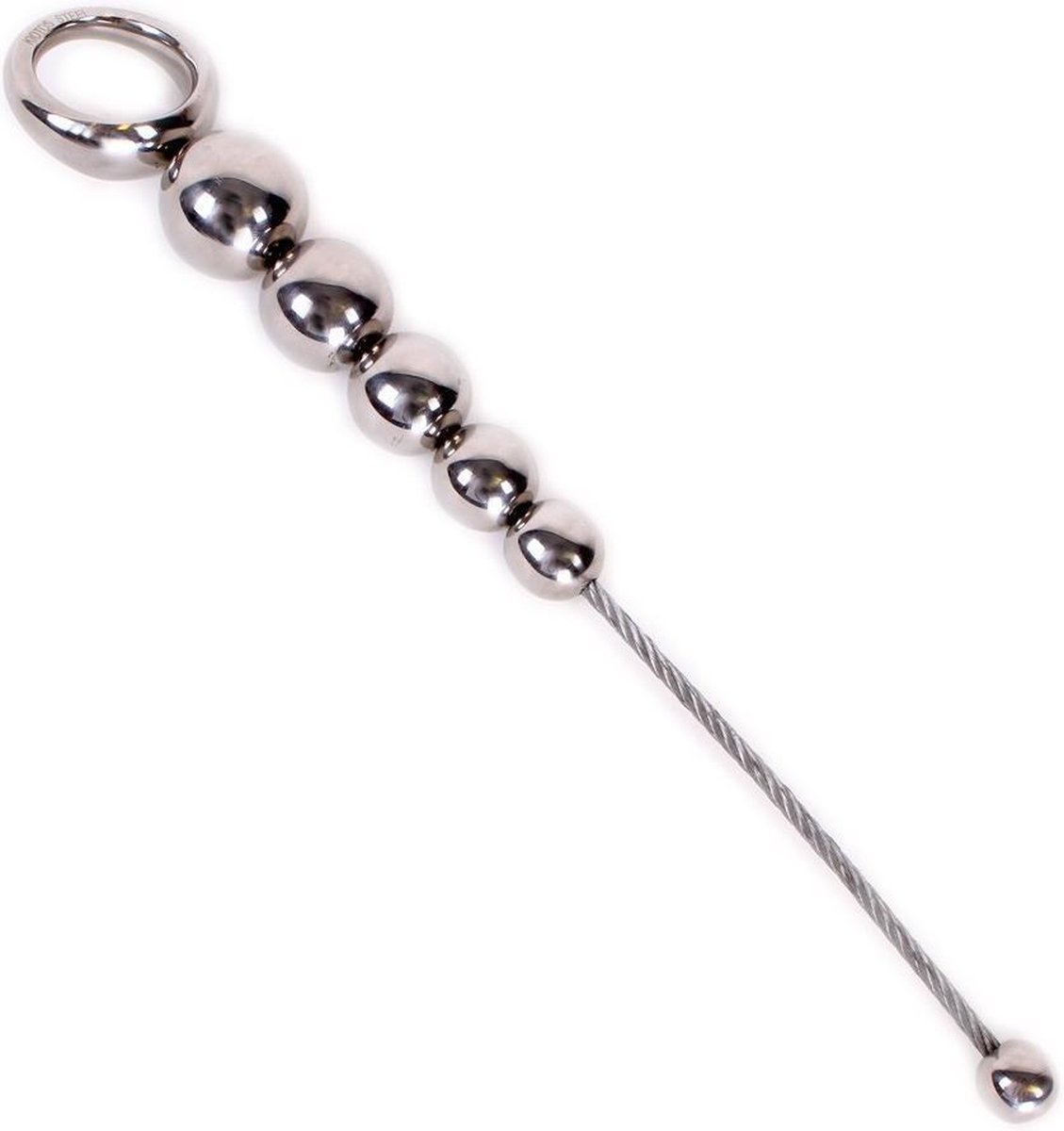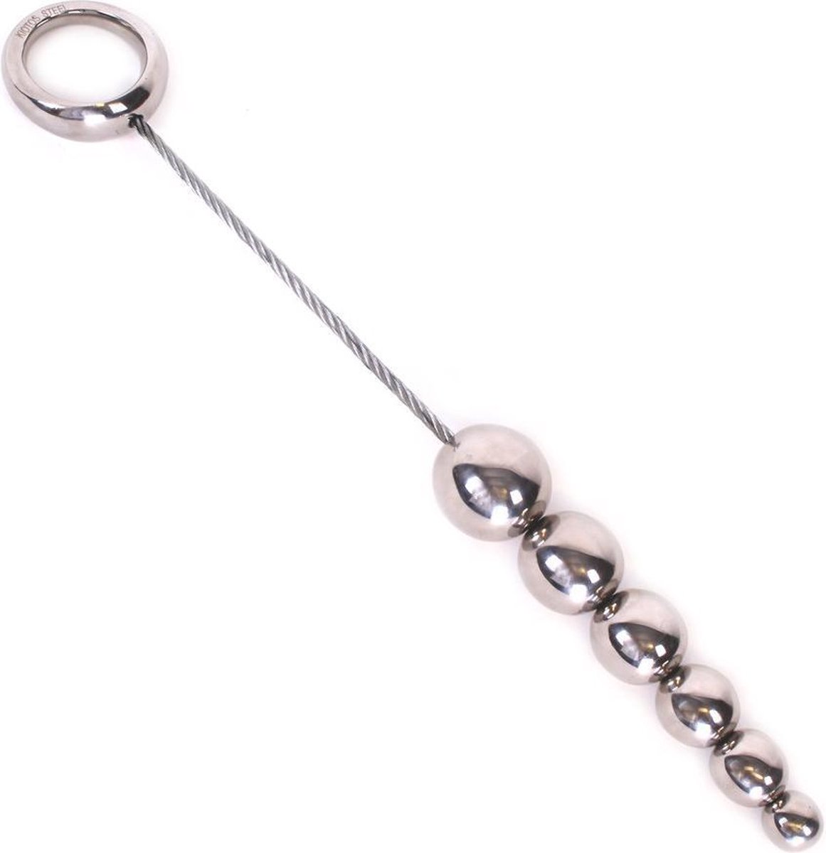 Kiotos Steel Anal movable Stainless Steel 6 Balls with strong retraction Ring 8719497535200. Made of Stainless Steel with quality mirror polish, aiming all serious anal players, male and female. An exotic Oriental anal toy stimulation aid. Slip the anal beads inside and then withdraw quickly at the moment of climax during sexual intercourse for an unbelievable sensation.