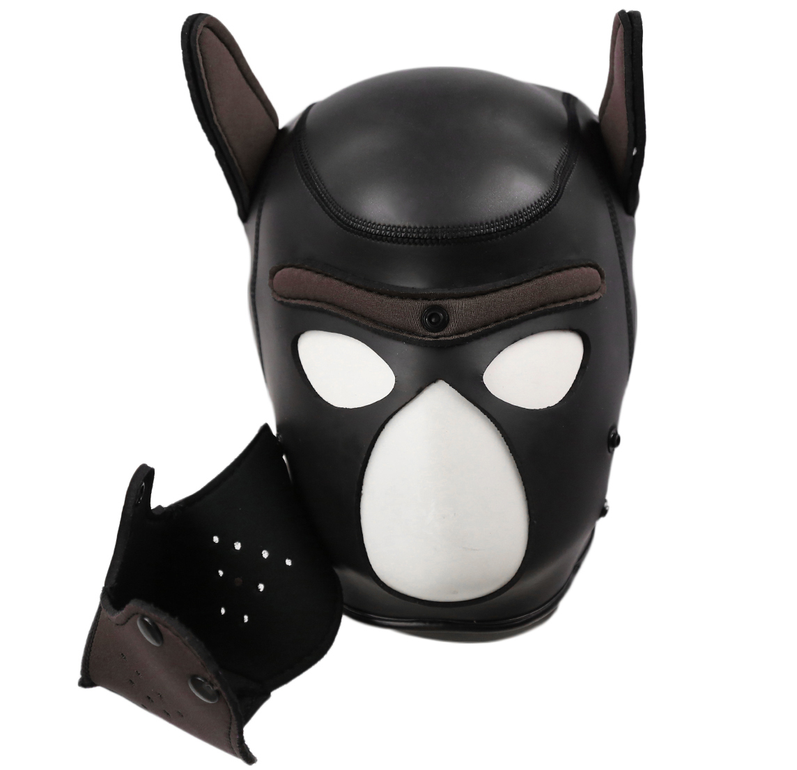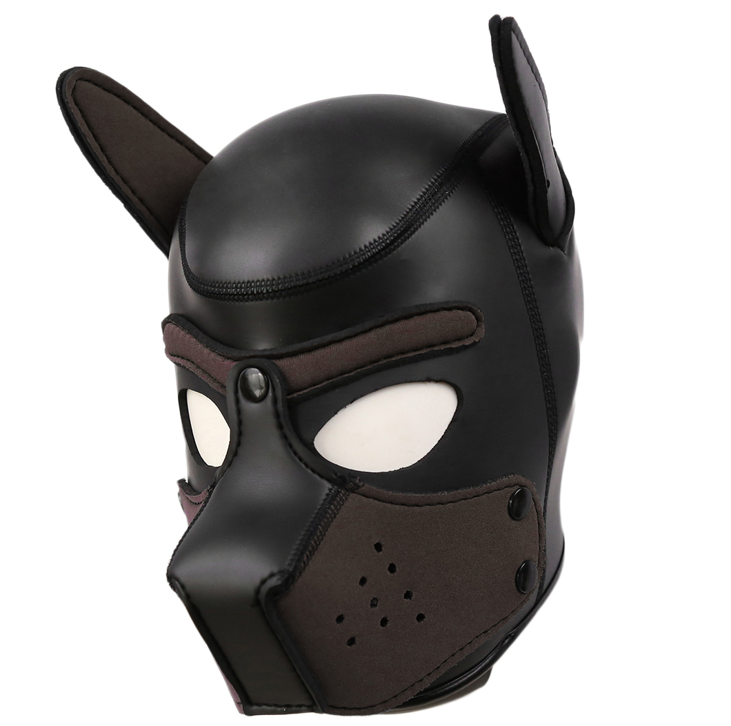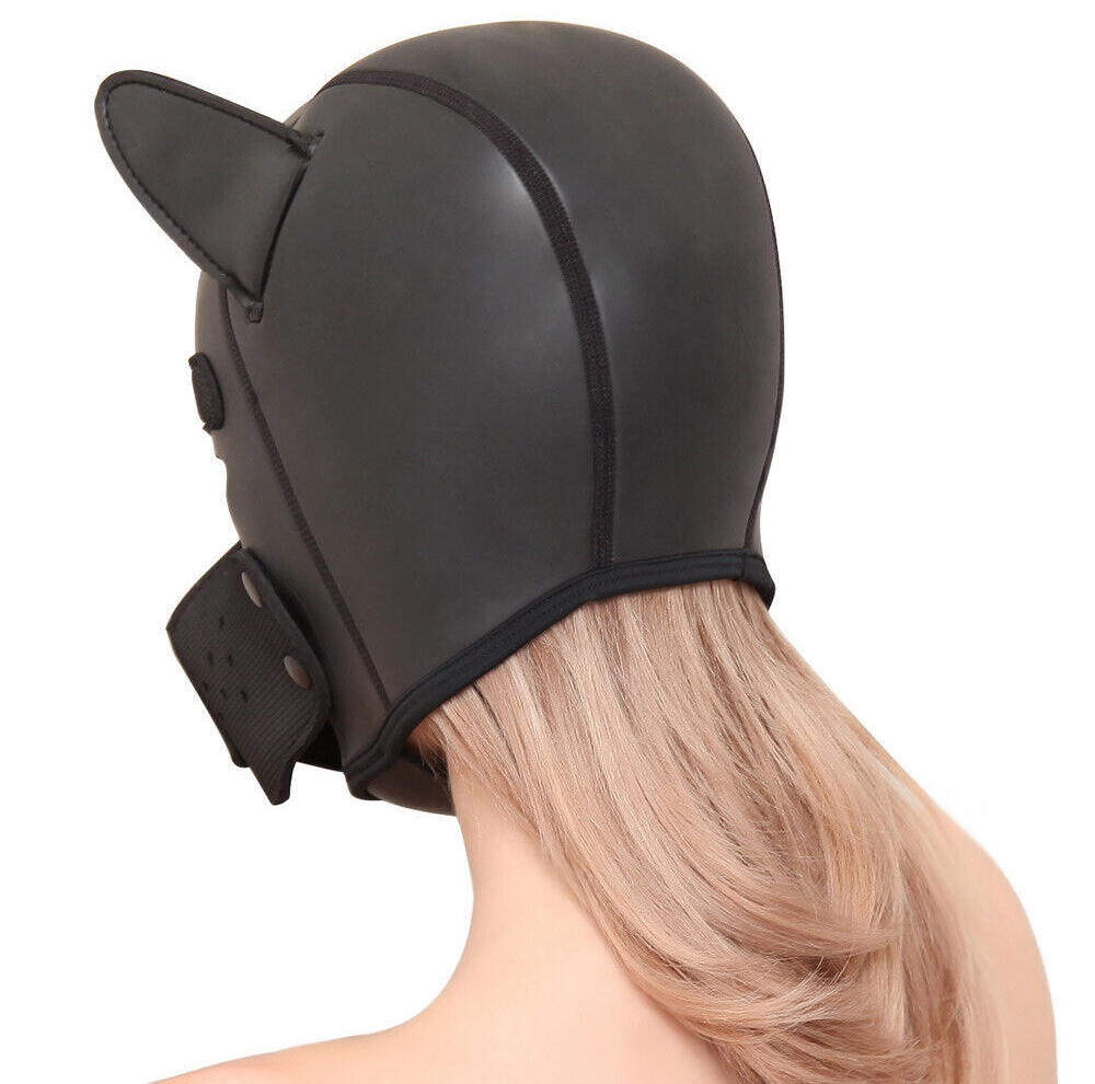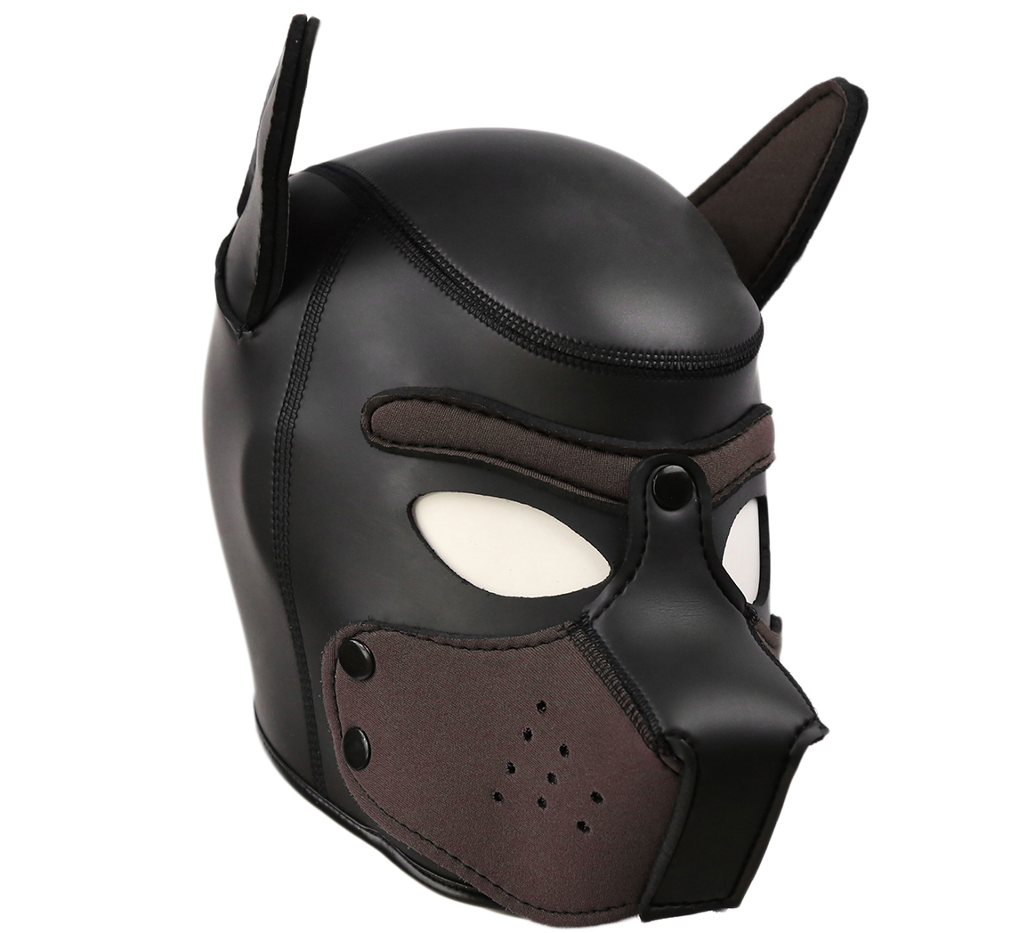 Bdsm fetish animal role play large size Bondage bitch, dog, puppy neoprene head hood by NAUGHTY TOYS. Ideal for men´s heads! Lightweighted, dog head mask made of soft neoprene with a velvety surface. Hood has got a detachable muzzle mouth part. A perfect enclosing fit.