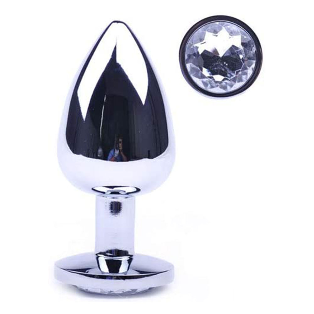 LARGE SIZE, FOR ADVANCED ANAL LOVERS, LIGHT WEIGHTED ALUMINIUM anal jeweled METAL BUTT PLUG with Clear Crystal DIAMOND 9 cm X 4 cm. Give color to the anus hole with this Lightweight metallic Aluminium Butt Plug with Crystal clear sparkling jewel.