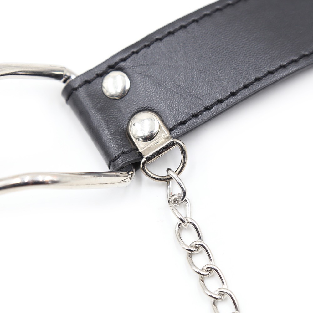 – Ring diameter- The ring measures 4,5 cm, and the gag connects to a leather strap that buckles in the back and keeps the gag firmly in place.