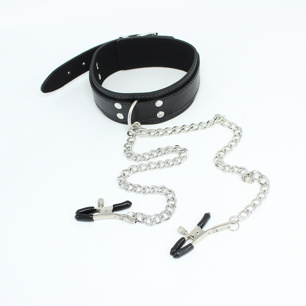 • Two-piece restraint set made up of a beautiful collar and nipple clamps