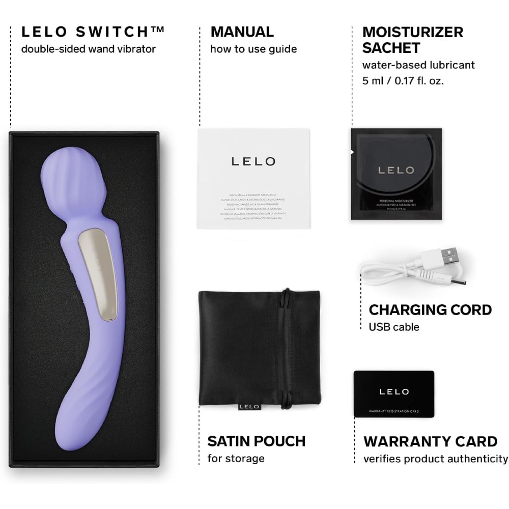 LELO SWITCH™ is a dual-ended vibrator designed for versatile pleasure. With two powerful motors — one for external stimulation and one for internal — it offers targeted sensations at both ends. The wand head features ultra-soft sensorial ribs for enhanced clitoral pleasure, while the other end delivers deep vaginal vibrations. LELO SWITCH™ connects to the LELO™ app, allowing for remote control and customizable settings. Compact, elegant, and functional, it’s a modern upgrade to the classic wand massager.