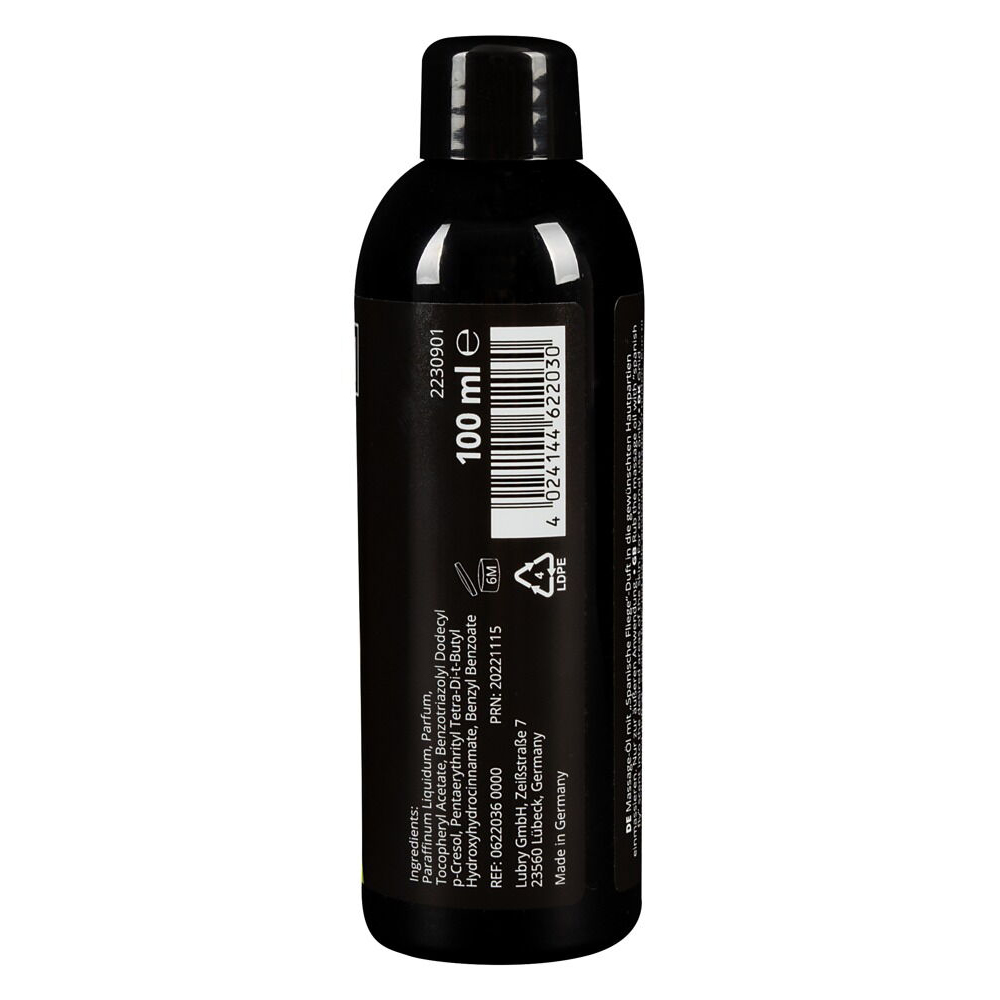 High quality erotic massage oil for hot massages with the stimulating scent of “Spanish Fly”.