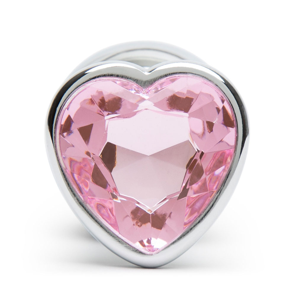 - Smooth metal butt plug with jewelled heart-shaped base for firm, filling sensations