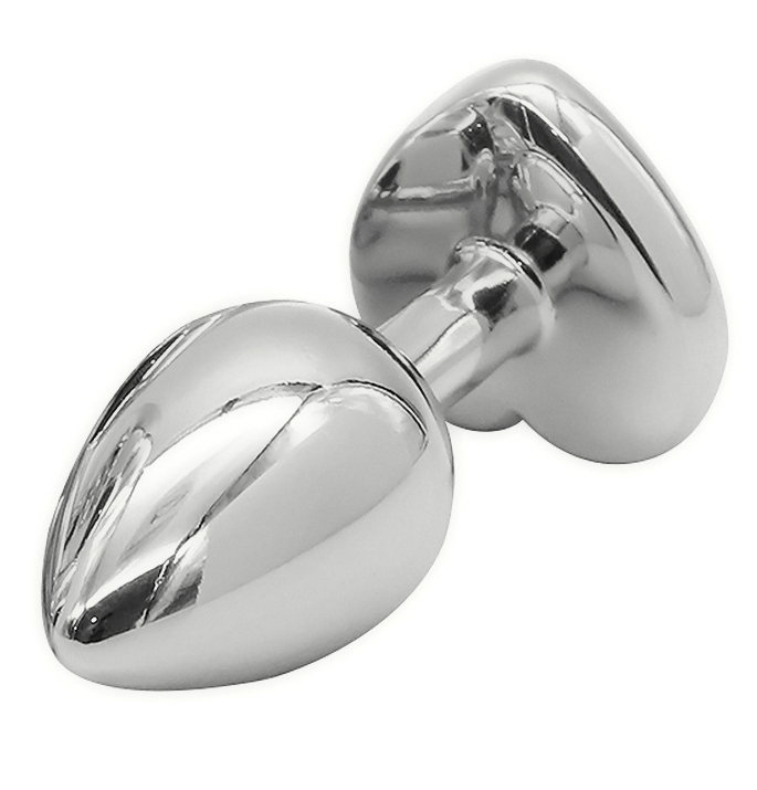– Smooth metal butt plug with jewelled heart-shaped base for firm, filling sensations