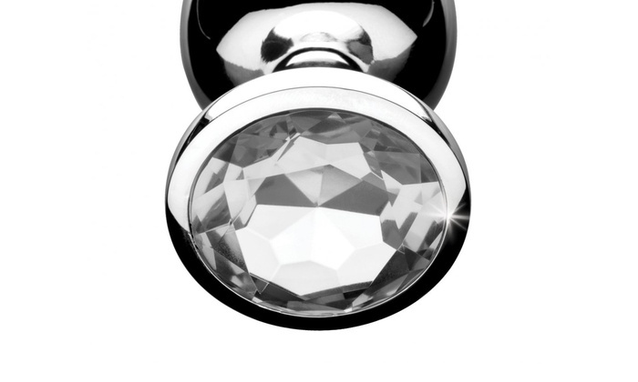 Naughty Toys Light weight Medium size Metal polished hard alloy Anal butt Plug with round sparkling Crystal Clear Gem fitted on the bottom. Jewel your parners ass with the lightest metallic buttplug in the world. High quality 100% Hard alloy polished Aluminum Butt plug.