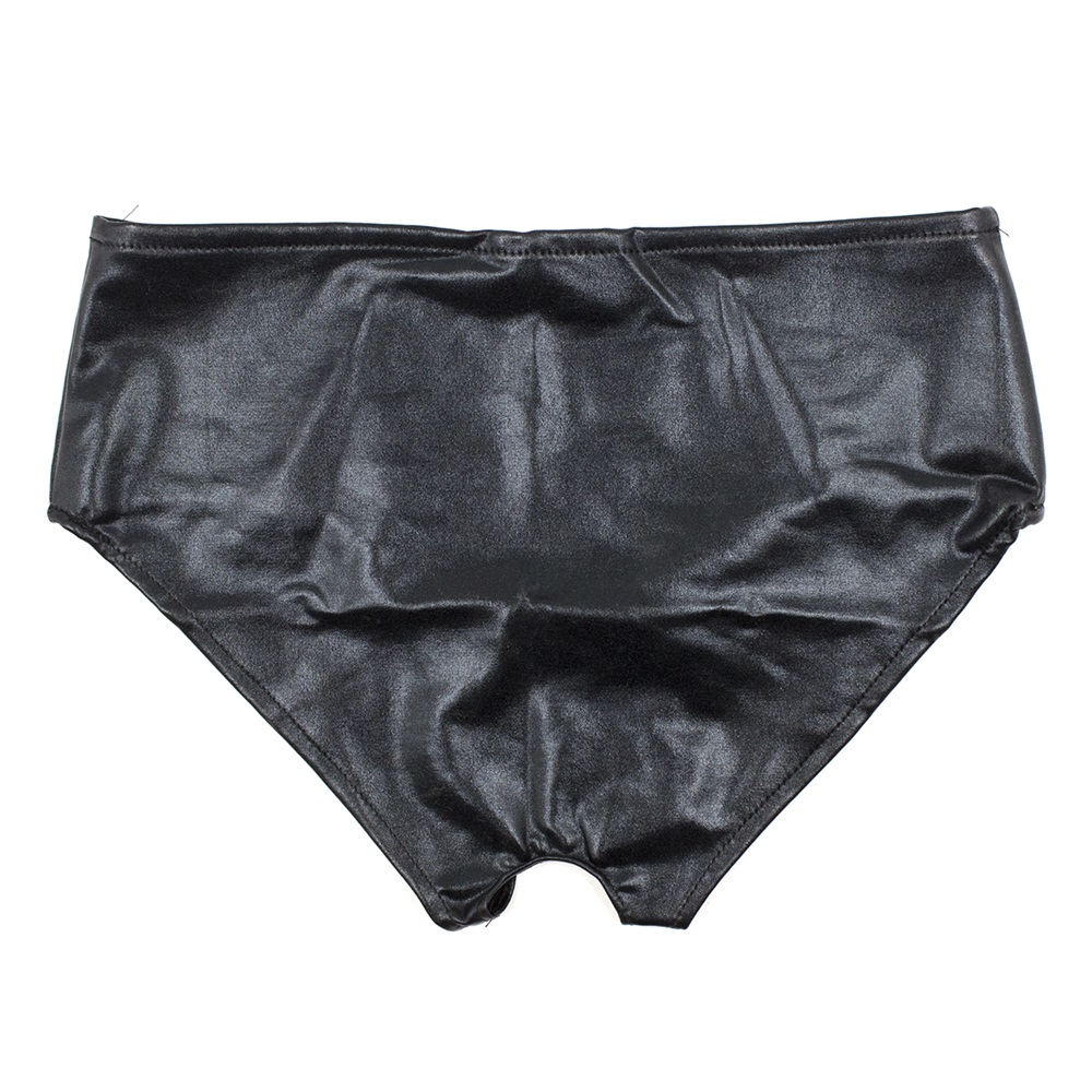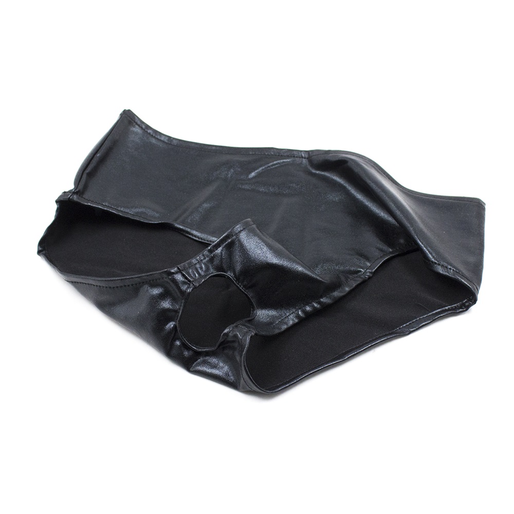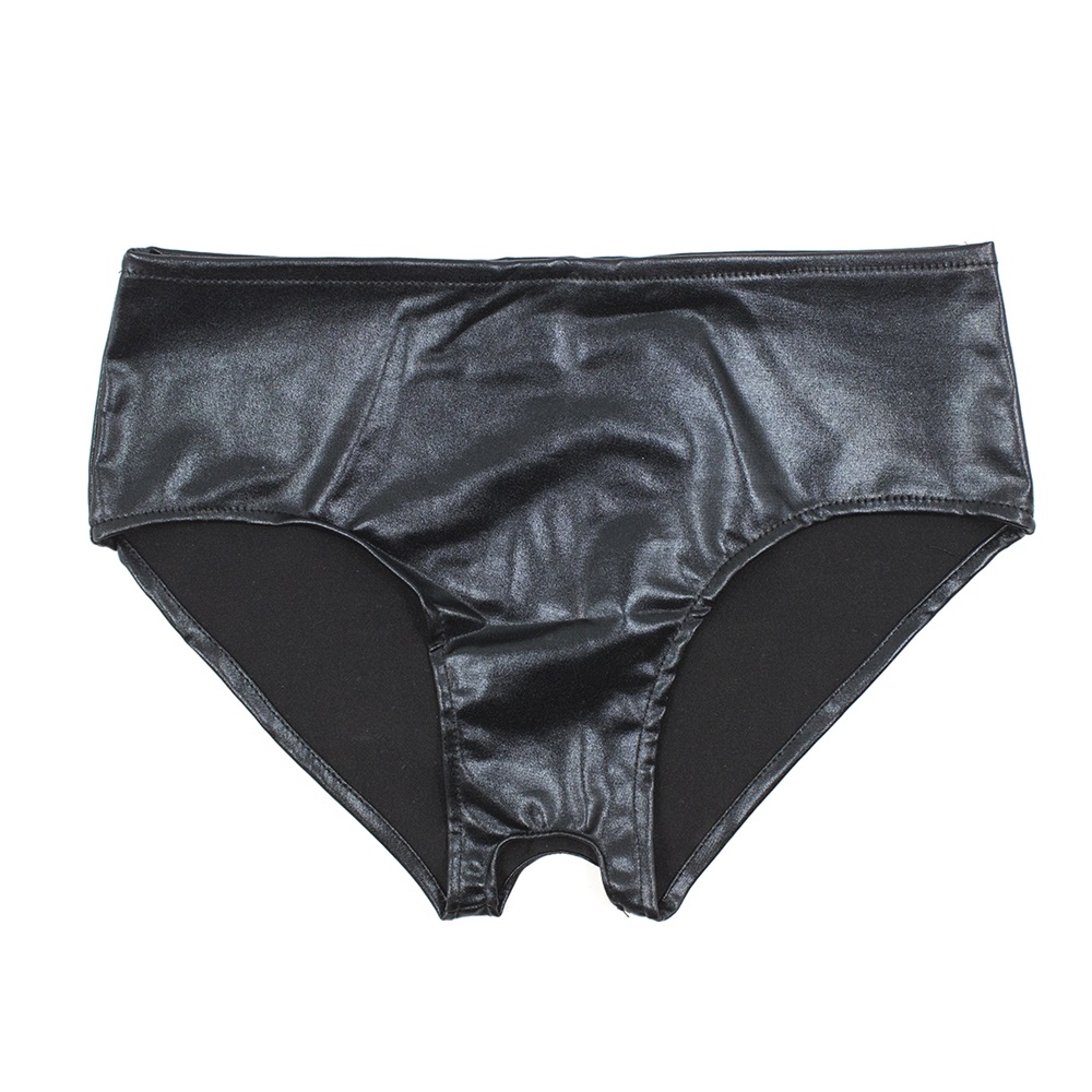 This is an open bottom female briefs that will offer all-day-long-and-everywhere confort for easy sex. It’s black and made out out of Enamel Spandex= 50% polyester, 10% Polyurethan and 40% PVC.