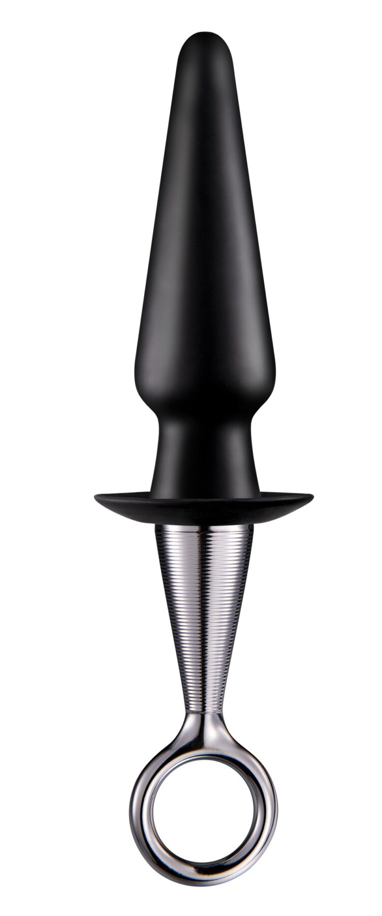 – Silicone butt plug with plated rigid handle