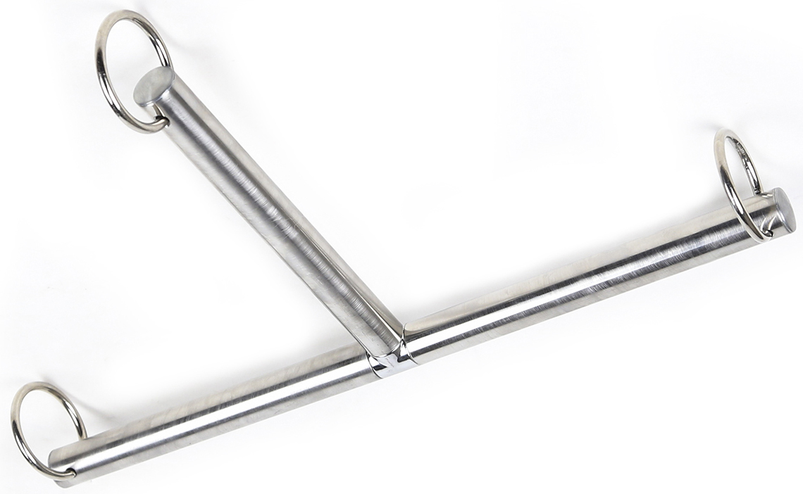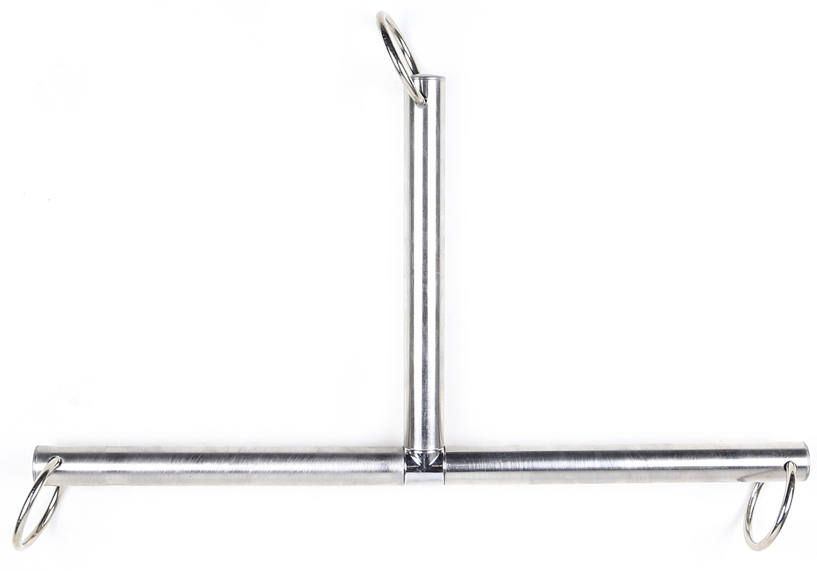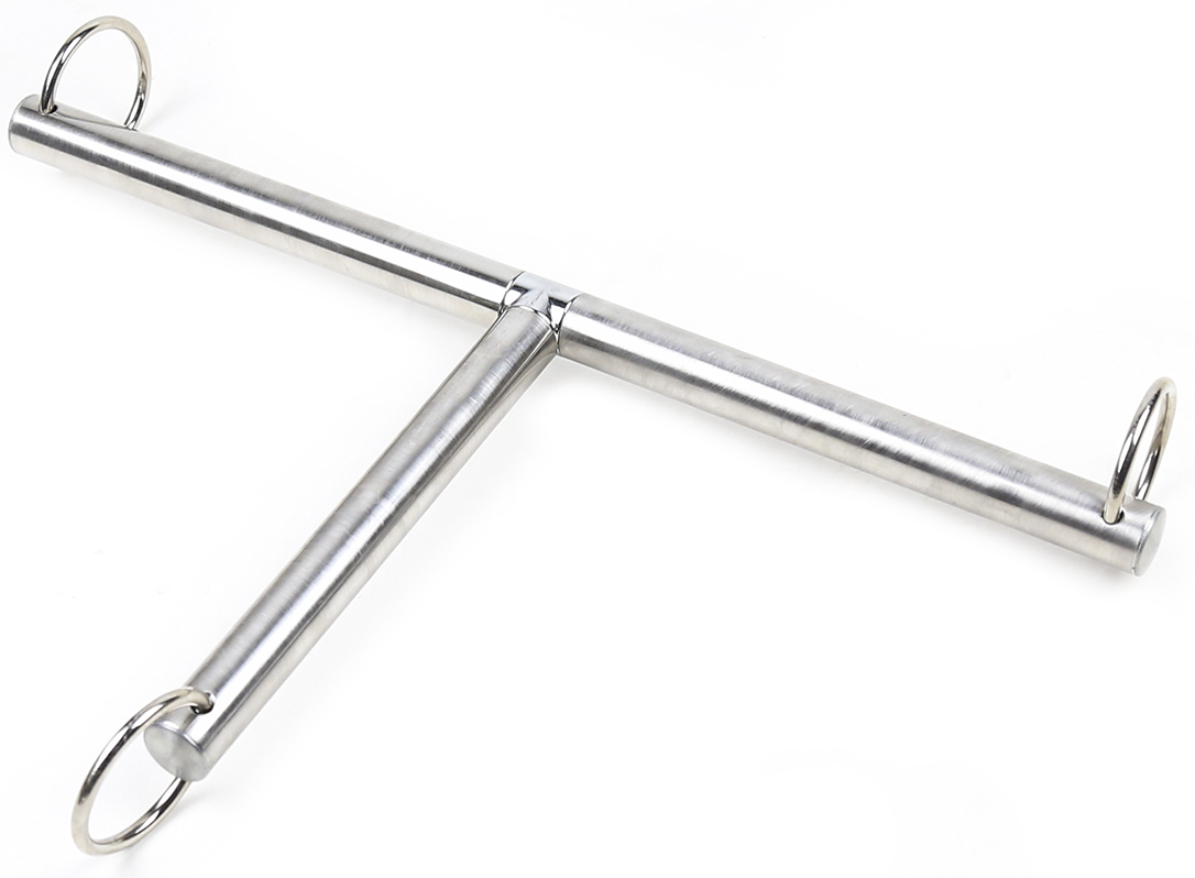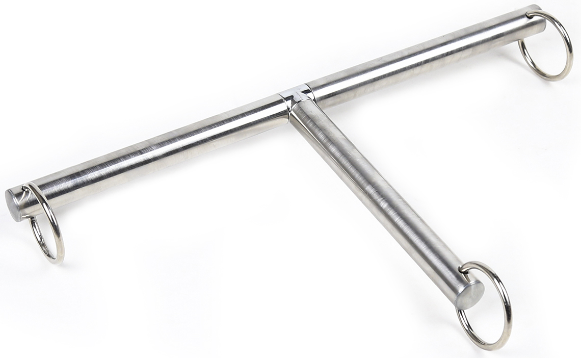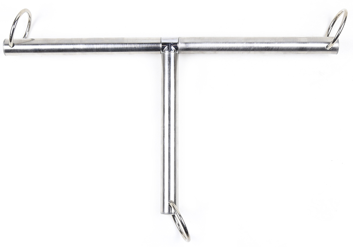New,heavy duty Bdsm Bondage T Shape metal steel Spreader Bar, 3-in-1 Neck collar to wrists restraint cuffs.This is a Fetish Slave Torture restraints system. Heavy duty O-Rings fitted at the end of each side (see photos)