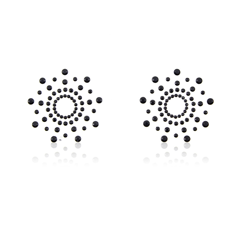 Turn up the charm and add a touch of glam to your nightwear with the Naughty Toys Black Rhinestone Nipple Stickers. Shaped like stars and adorned with black rhinestones, these sparkling stickers come in a pack of two. Perfect for making a bold and playful statement.