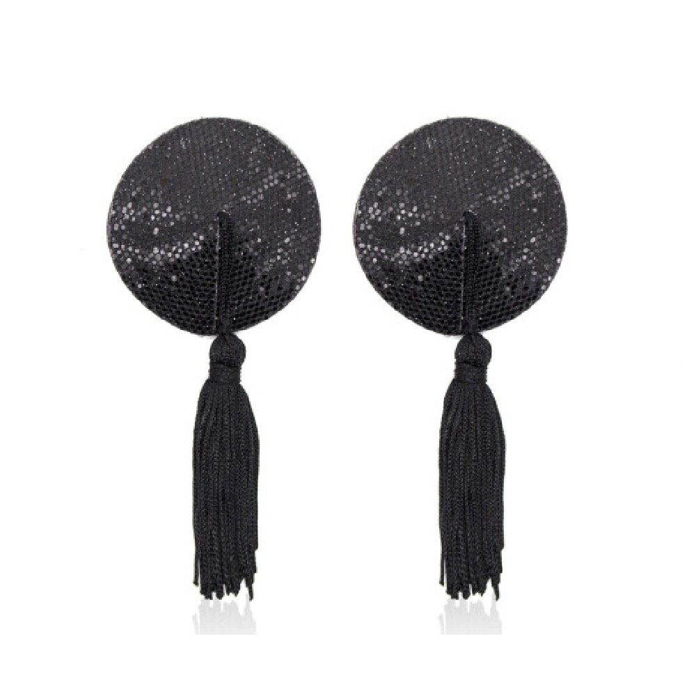 For a night of glamorous seduction, add the Naughty Toys Black Nipple pasties with tassels to your outfit. Adorned in sparkling sequins.