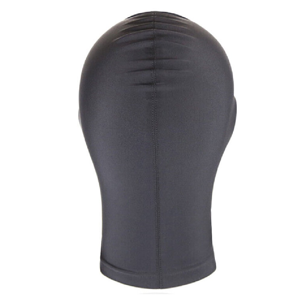 Bondage play black elastic breathable spandex unisex hood with no holes for cosplay fetish play games.