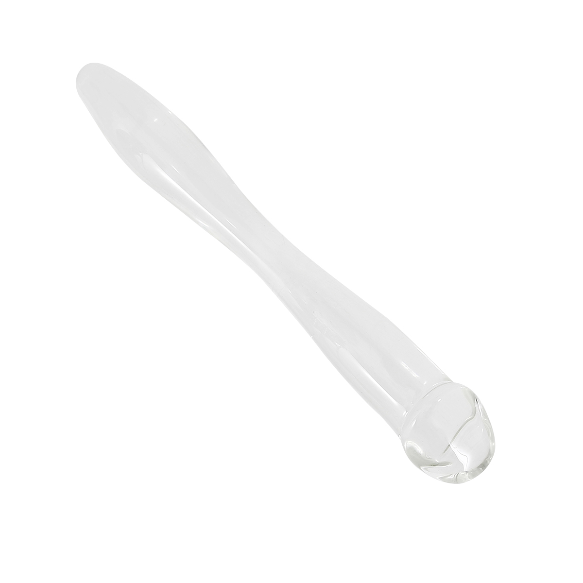 Naughty toys for naughty boys and naughty girls. Very thin (Ø 2 cm) and 20 cm long, double sided anal dildo made of Borosilicate glass which is very strong, non-porous, hygienic and safe for the body. See-through clear finish with smooth and clean looks. The clever design features two usable ends. One end with a conical shape and a tapered tip for easy insertion. The other end has a penis head form that increase in size by (Ø 3 cm).