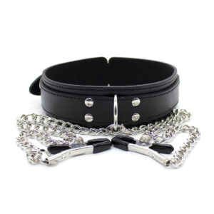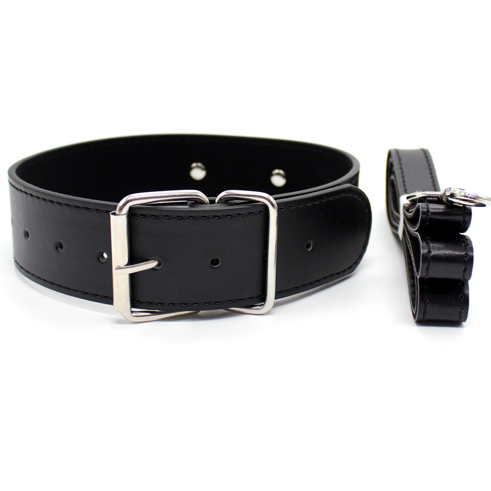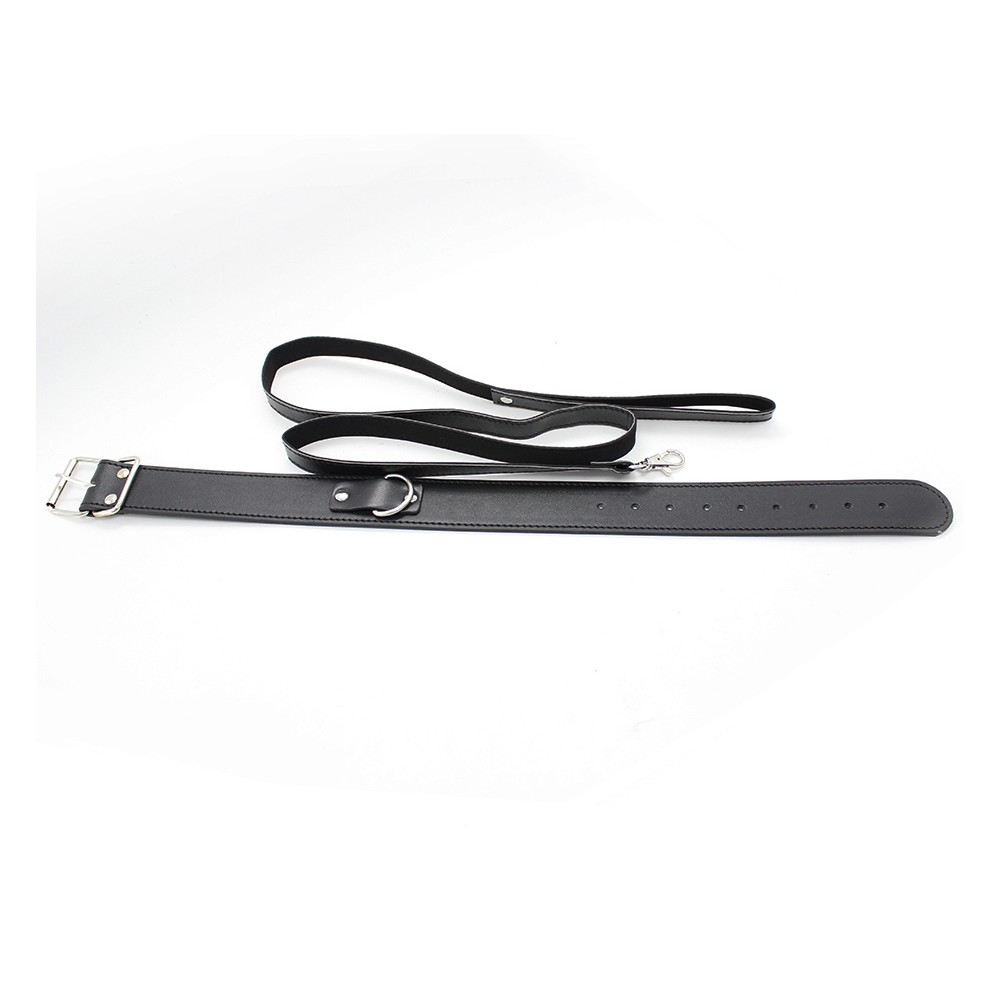 Control your submisive with the magnificent Naughty Toys faux leather collar with leash O/S. Bondage role play, one size fully adjustable, faux leather black neck collar with leash by Naughty Toys.
