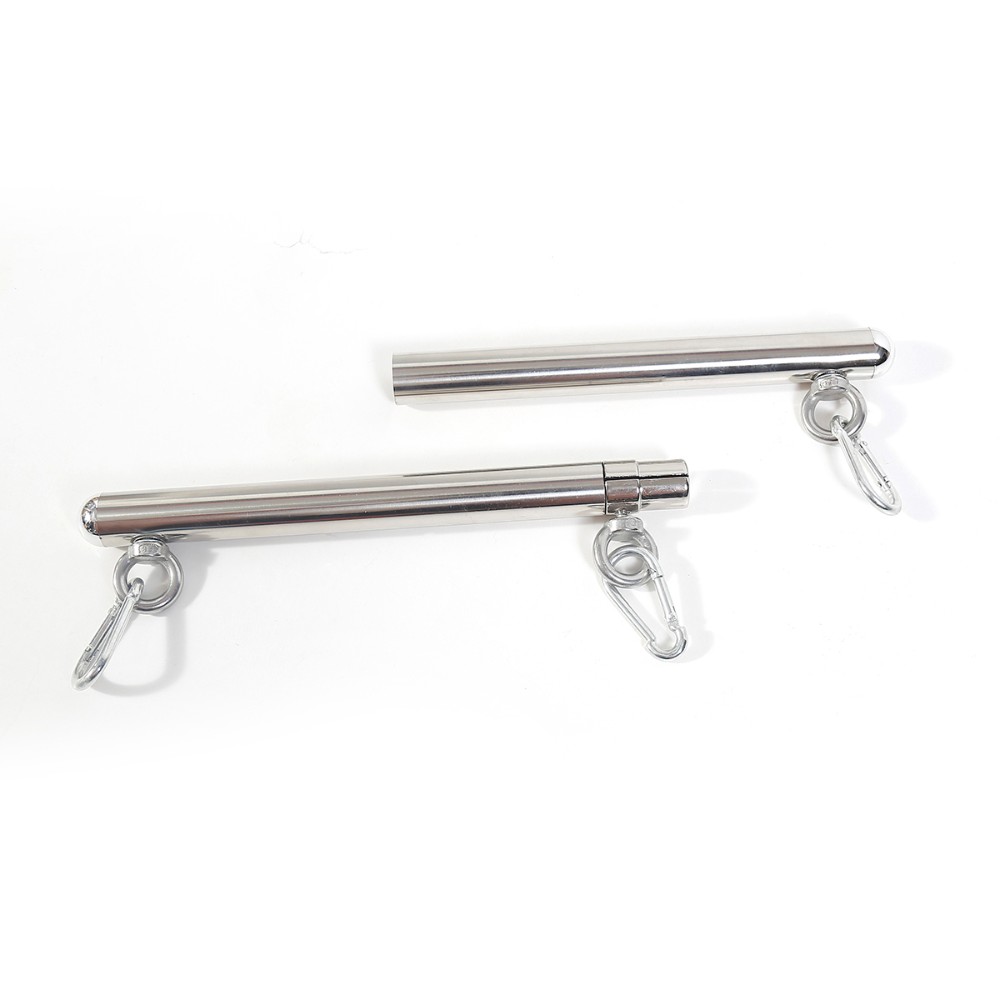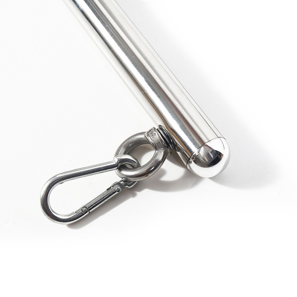 The beautiful luxurious NAUGHTY TOYS Fetish restraint spreader metal bar with 3 hooks is made of stainless steel is hand polished which gives its nice smooth finishing. You can easily attach a neck collar, handcuffs and ankle cuffs to the three (3) sturdy rings that are attached to the spreader bar. The choice of restraints is totally up to you. A real must-have for lovers of bondage gives something extra to your bedroom or your dungeon.