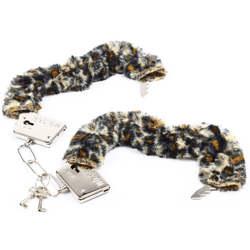 Naughty Toys Bedroom bondage role play playful metal hand cuffs with leopard detouchable velevet soft fur. Tie up your lover and explore your fetish fantasies with these purple Furry Cuffs. Lined with velvety-soft faux fur, these first-timer cuffs keep your lover comfortably constrained and looking and feeling sexy. You’ll both love the sensuous feel of the soft fur as it teases, tickles and titillates!