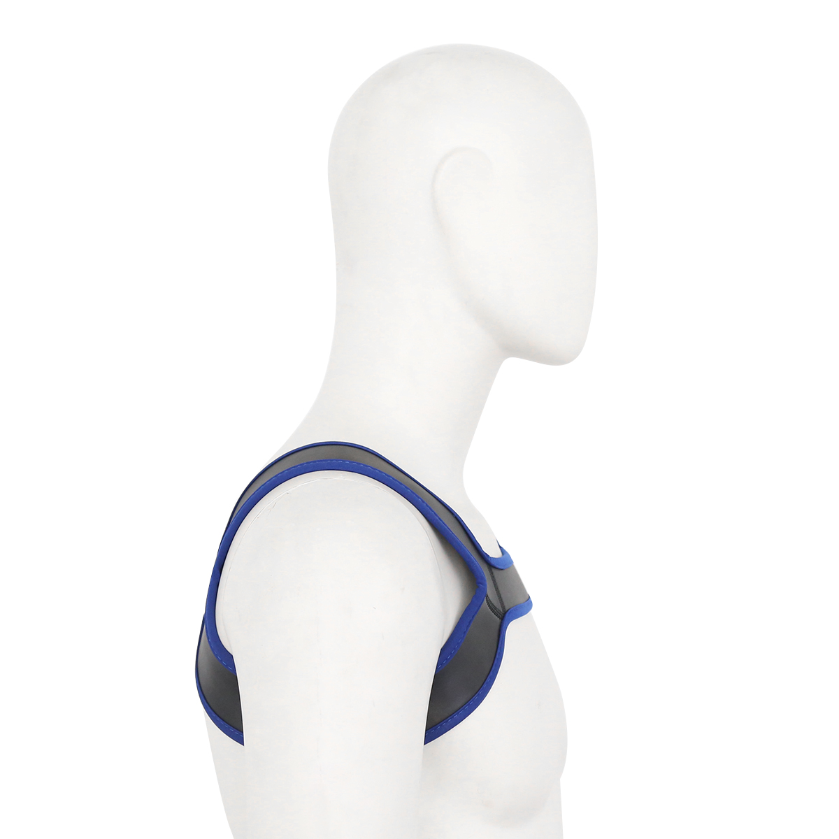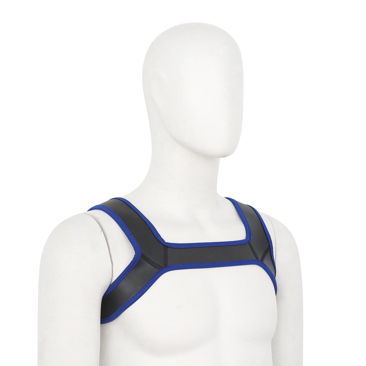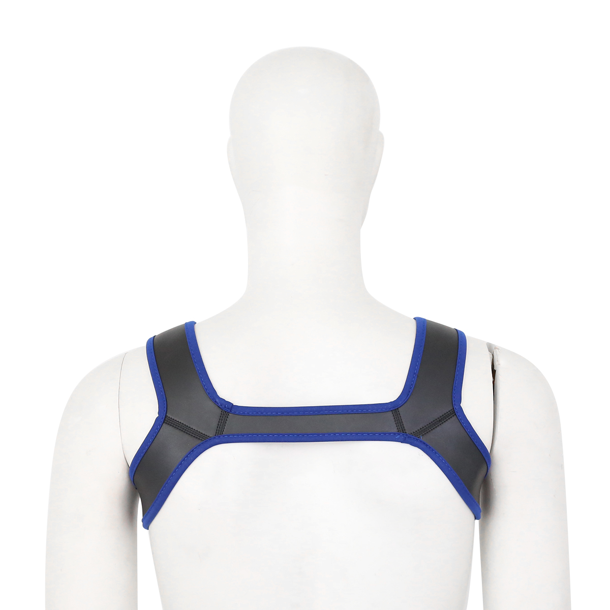 Refresh your love life by adding the surprising element of fetish accessories! This chest harness is made from neoprene, making it one of the most comfortable ones to wear long-term. It s easy to wear as well as remove. It is offered in a black and blue colour.