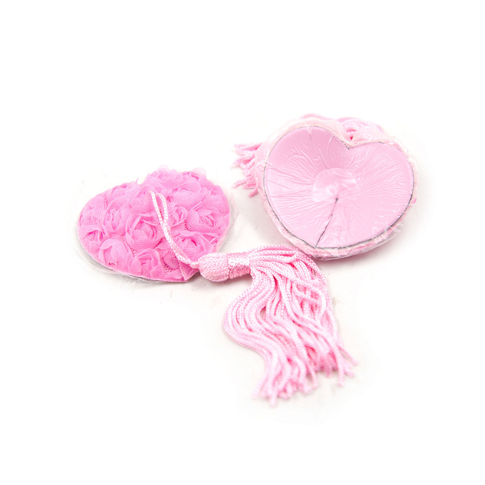 Give an extra flirty touch to your evening outfit or to your bedroom moments with the Naughty Toys Pink Burlesque Rose Nipple Pasties. Pink, heart shaped nipple cover with small pink rose decorations and flirty tassels. This nipple cover will draw your lover attention to your breasts.
