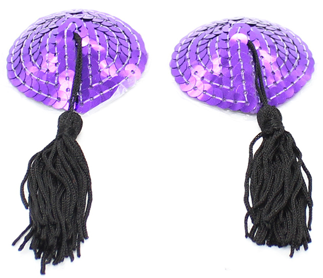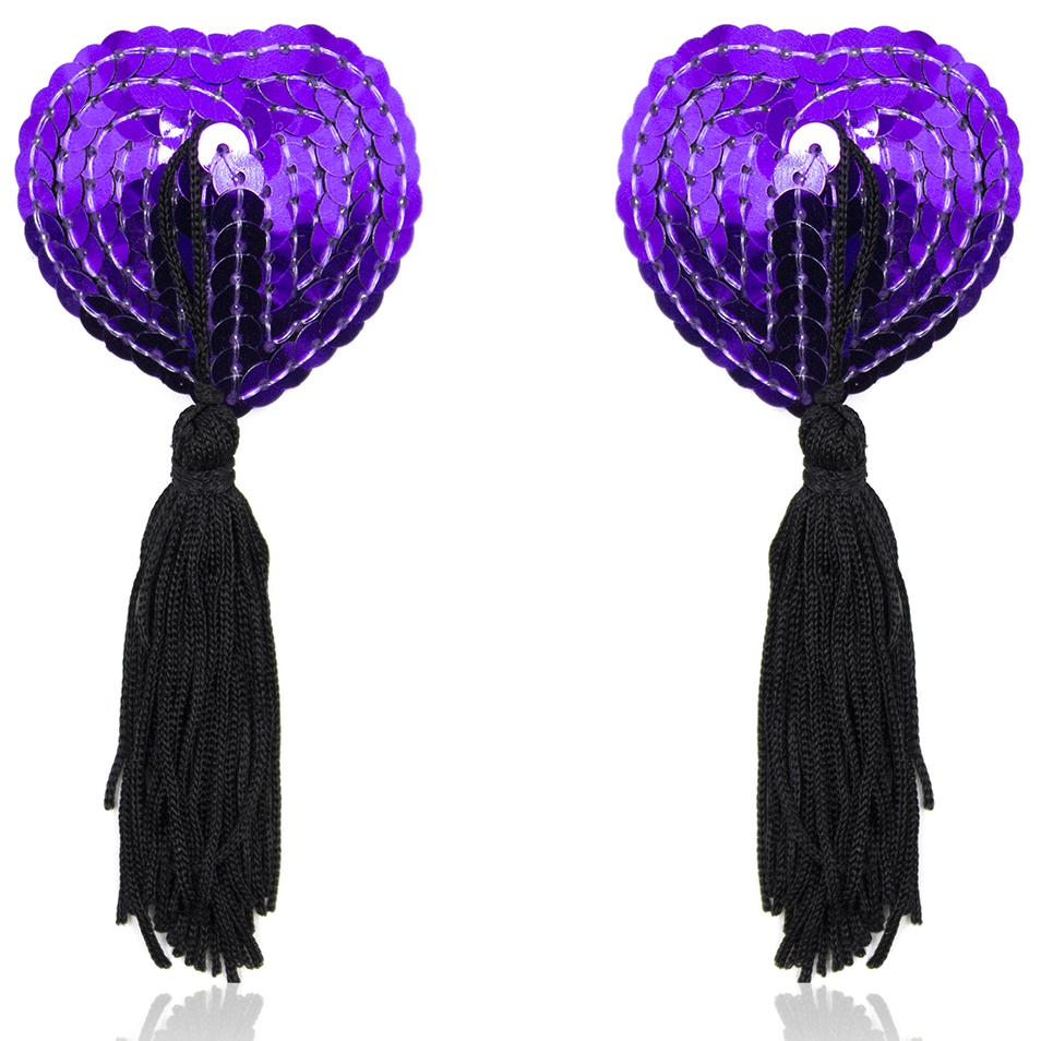 Embrace your nipples with Naughty Toys heart burlesque sequin nipple covers with tassels. Sexy Roleplaying accessories that will boost any fantasy.