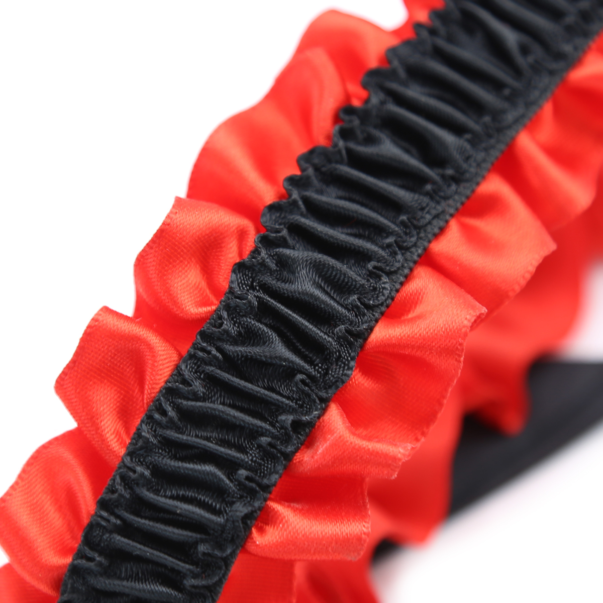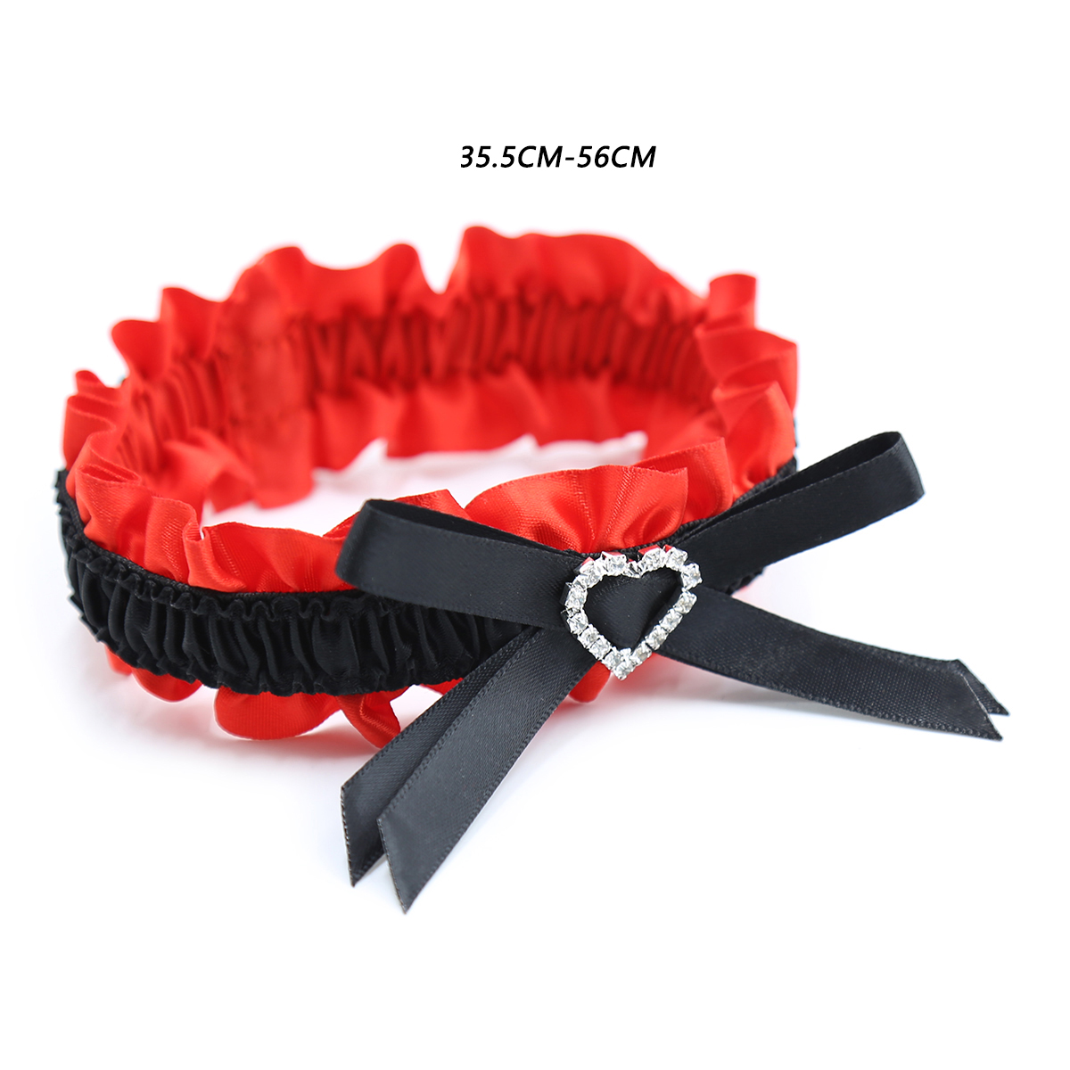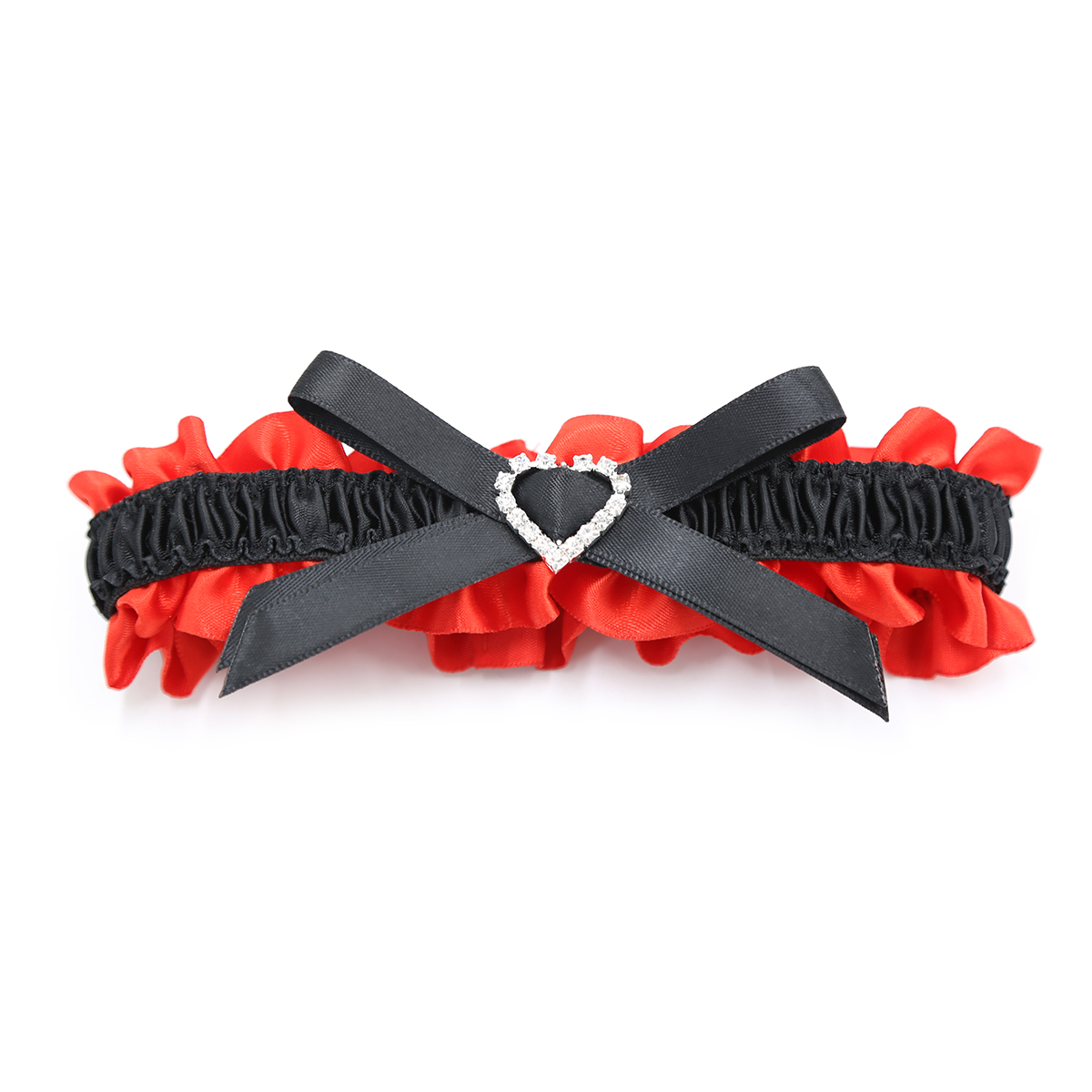 Elevate every erotic outfit by adding this sexy red garter decorated by a black satin bow and jewelled heart. Dress to impress and breathe a new air of sensuality to your bedroom games. Made by a soft material gentle to the skin, making it comfortable for long wear.