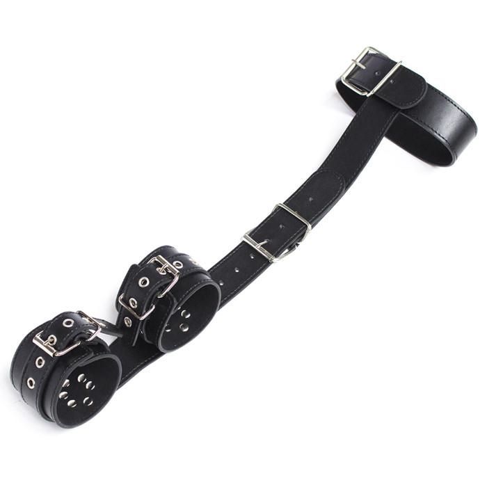 - Dual Functionality: Combines a submissive’s collar with an adjustable back strap and attached wrist cuffs.