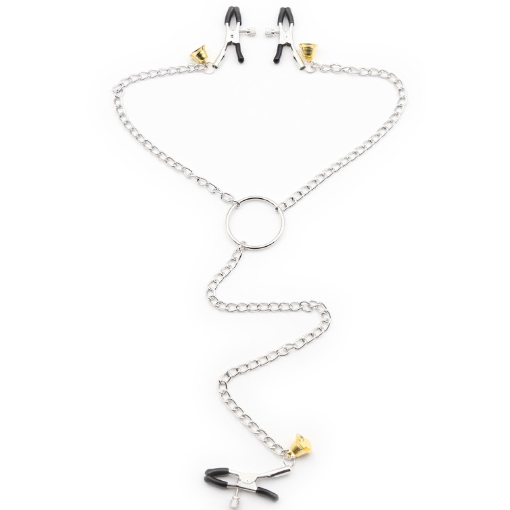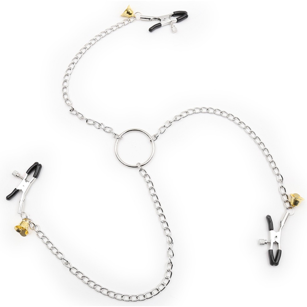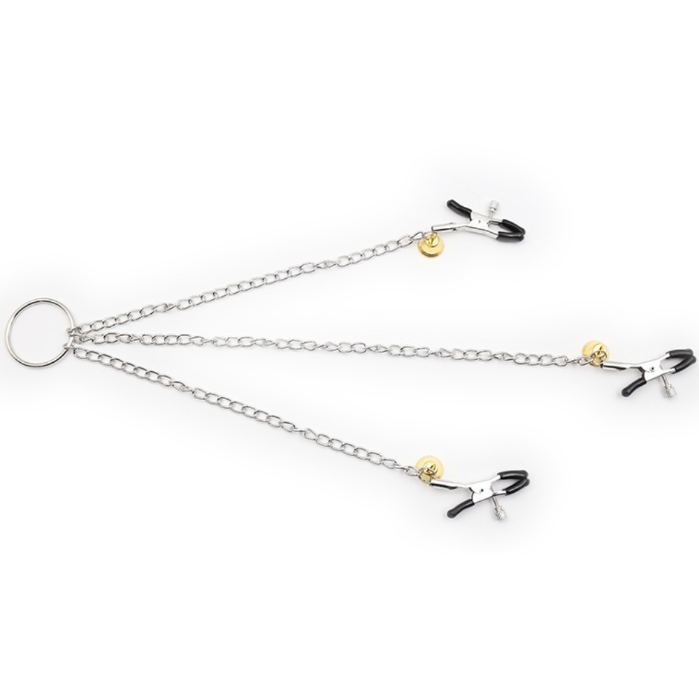 If you want to complete your BDSM collection, these metal nipple clamps are what you need. But these clamps are special since, along with the nipple clamps, one for the clitoris is included. The three clips are linked with chains to a central ring, ideal also if you want to connect the piece to another accessory, such as necklaces or handcuffs.