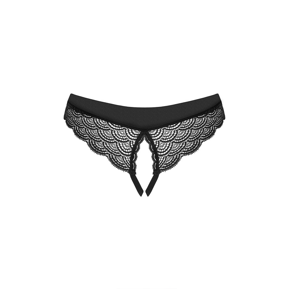 Do you want to wow your upcoming date? Accentuate your femininity in an extremely subtle way! Put on the Obsessive Chemeris crotchless panties Black in timeless black and feel irresistibly attractive. Minimalist form, unique lace, with a tempting cut emphasizing the derriere, and an open crotch that adds spice – a guarantee of unforgettable moments full of tenderness. Choose new experiences and get ready for a wave of pleasure!