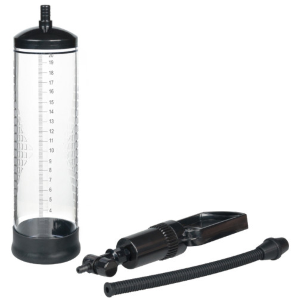 The Penis Pump Enlarger Vacuum Erection Enhancer 22 x 6.8 cm with effective hand-grip vacuum penis pump for penis training and enlargement. Combine only with water-based lubricants!